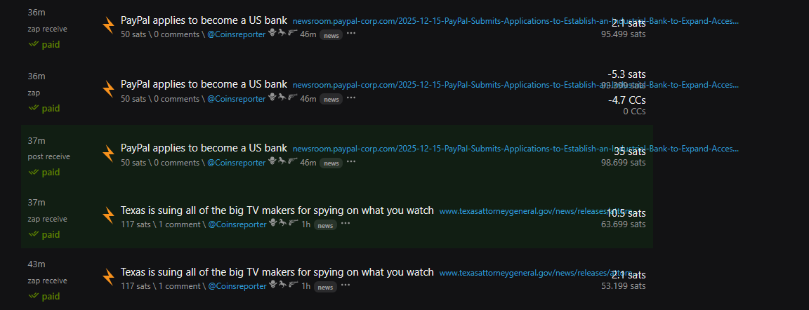 What does the Green Rows represent on the https://stacker.news/satistics page?