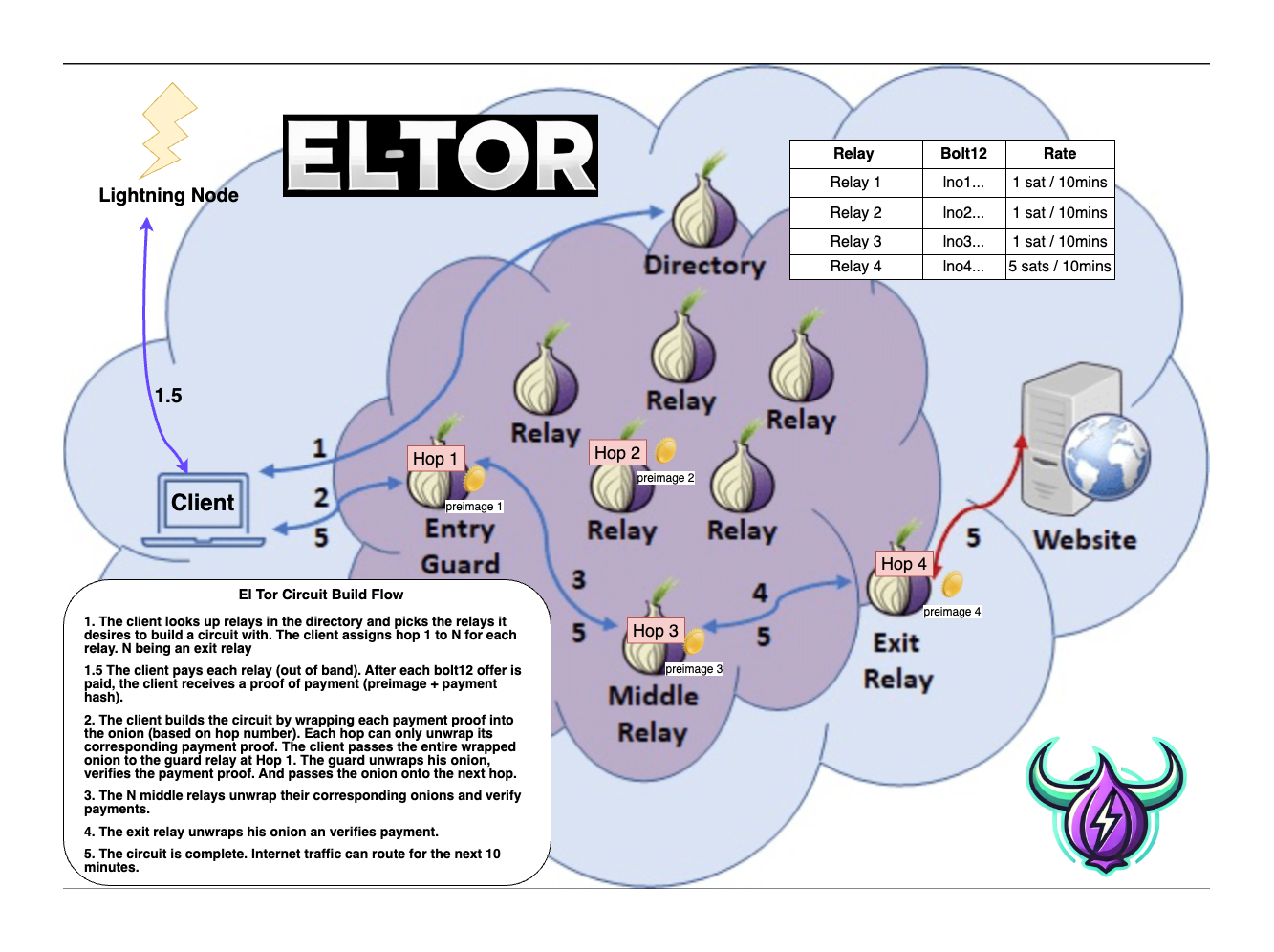 High bandwidth Tor network. Incentivised by the Bitcoin Lightning Network. More decentralized. More Secure. Relays earn sats. Powered by Bolt12 offers.