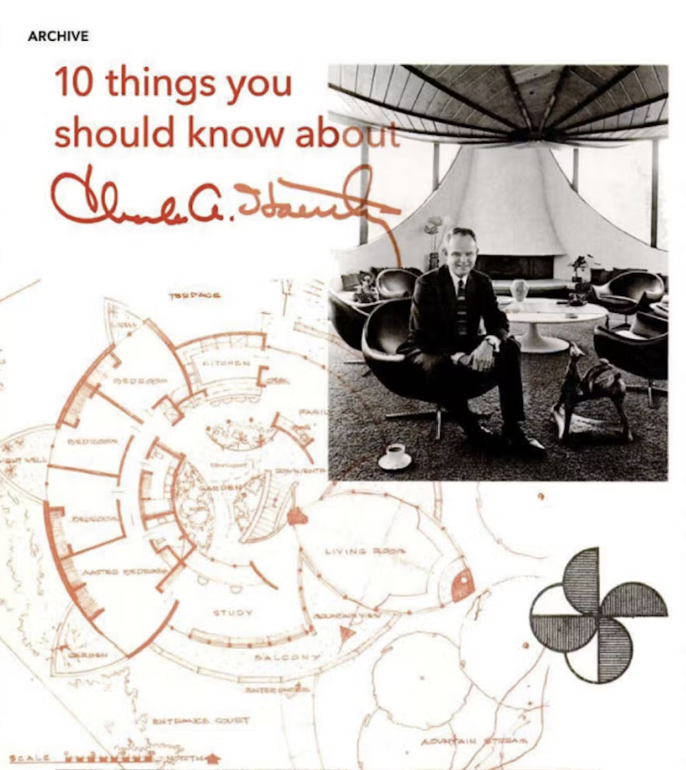 Joel Haertling, son and de facto archivist of the late architect Charles A. Haertling, faxed over a single page written by his father. Titled "Thoughts on Architecture," it’s a blurry, typewritten list. Charles Haertling succumbed to a brain tumor in 1984, but the text is immediate and cuts across the years: 21 enumerated glimpses into a creative mind. Someone has circled point number 14: "Design is always a tortuous, grueling, almost maddening, though heavenly sweet, task." The line is as familiar as it is revealing. Look at Haertling’s houses with their radically pitched roofs, daring cantilevers, and mushrooming facades—products of a career spent building in the Boulder, Colorado, area—and you can see both his pleasure and his pain.