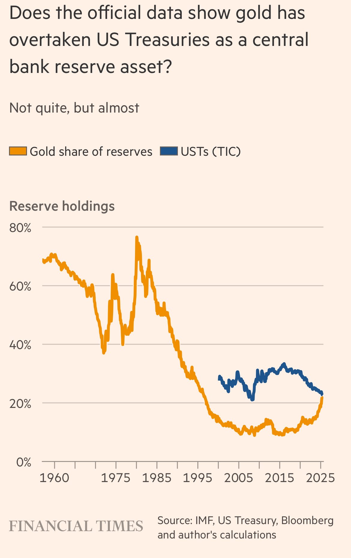 Gold is about to overtake US treasuries as the feds biggest reserve asset