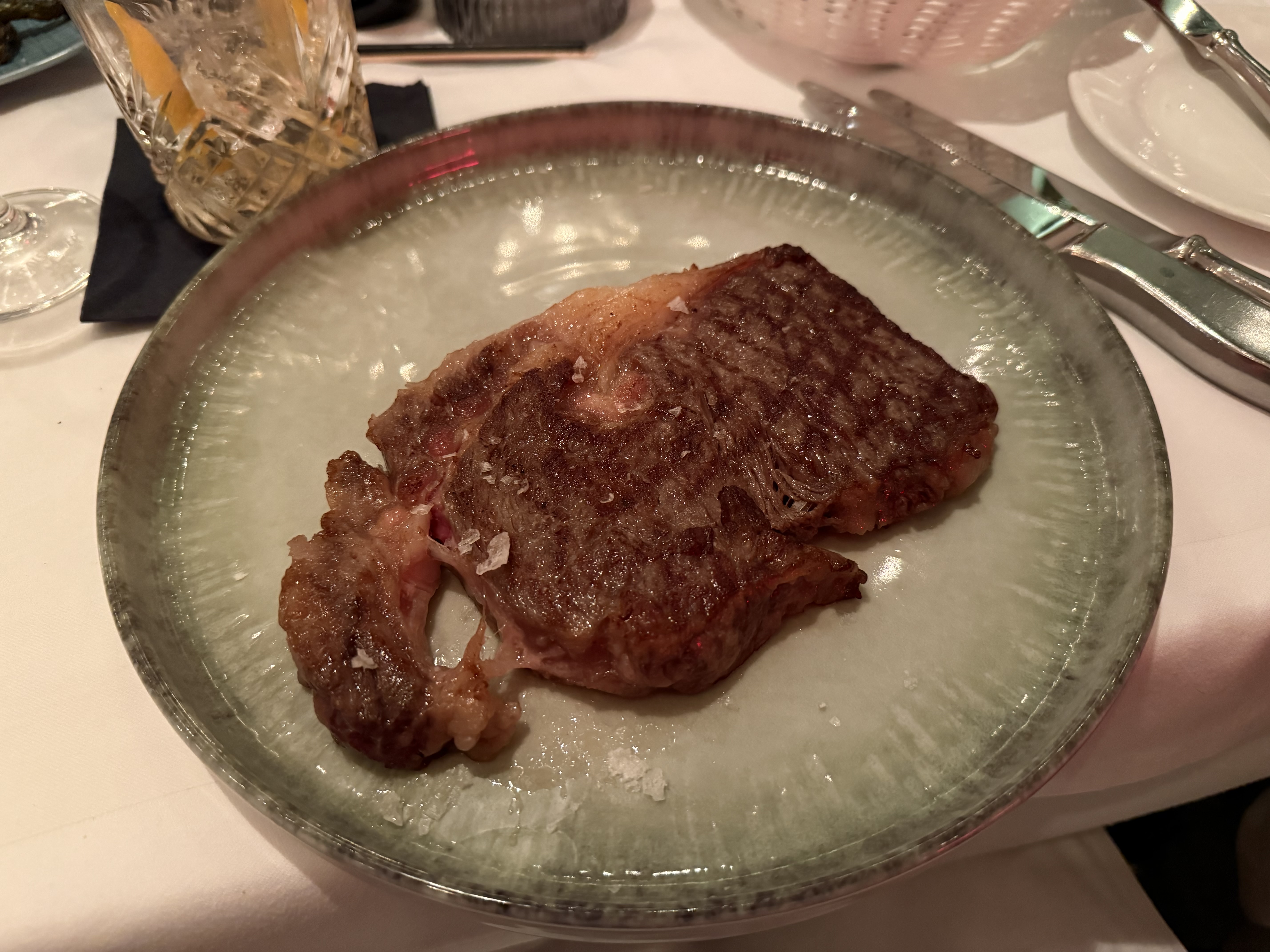 Had 2 steaks while in Germany. One was steak frites, the other this ribeye, however the ribeye was Australian wagyu so not a totally fair evaluationm