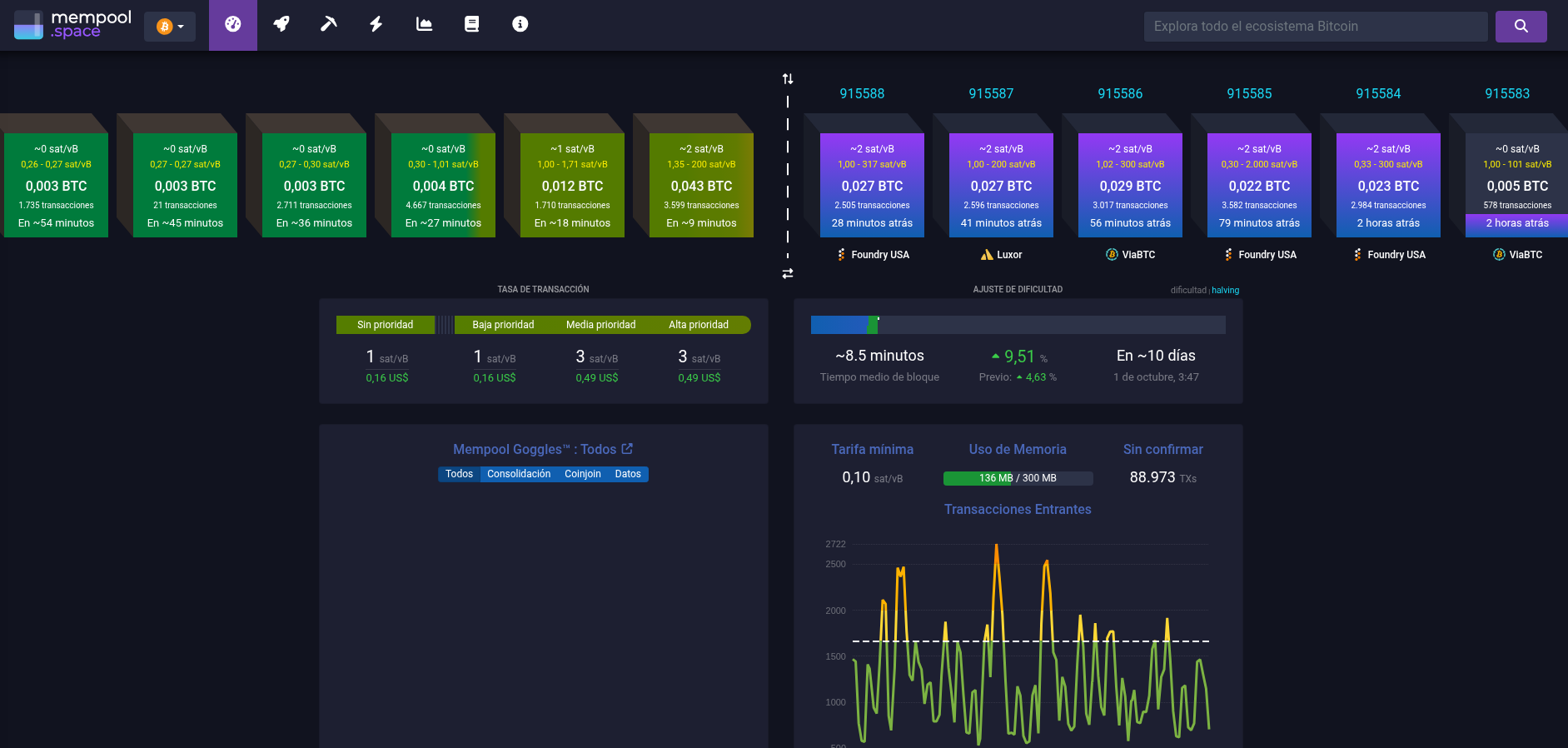 š” Exploring the Bitcoin mempool: right now transactions are being confirmed with very low fees (~1 sat/vB).