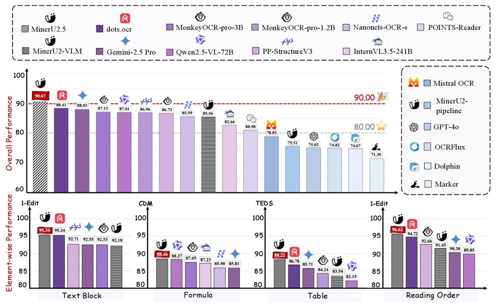 We introduce a new document parsing framework, MinerU2.5. The key innovation is a decoupled architecture that separates global layout analysis from local content recognition via an efficient coarse-to-fine, two-stage inference mechanism.In the first stage, the model conducts fast and holistic layout analysis on downsampled document images, capturing the global structural organization with minimal computational cost. In the second stage, guided by the detected layout, it crops key regions from the original high-resolution input and performs fine-grained recognition within local windows, thereby preserving native resolution and ensuring high accuracy.