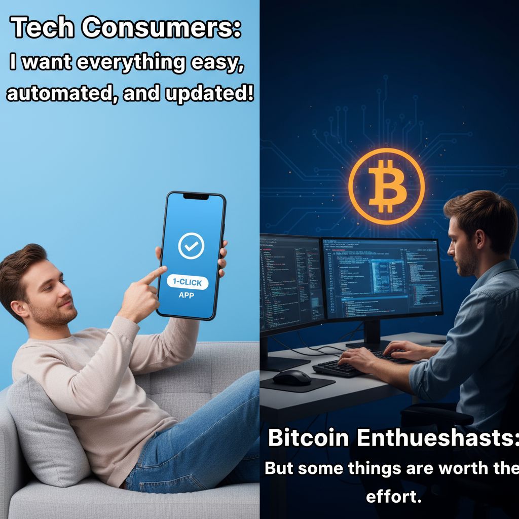 Some things are not other things. I know, it sucks but, chess isn't checkers. Sometimes to do truly cool stuff, you have to work harder. Wage slaves would lament building their own business because you can't just work and collect a check. Sorry, some stuff is worth the effort. Bitcoin is one such thing.