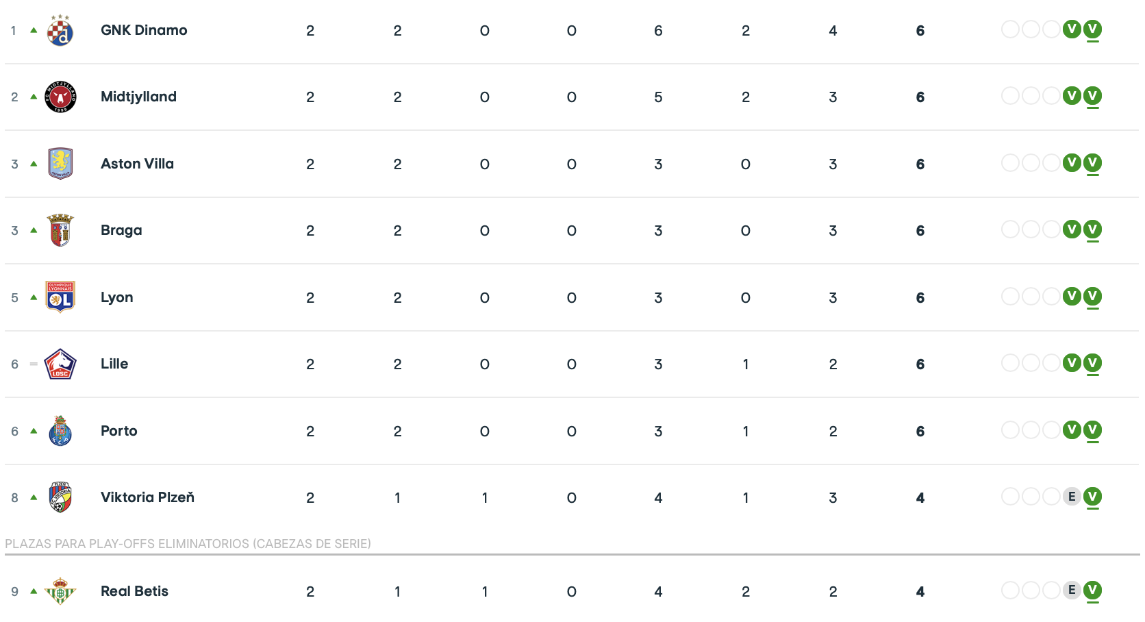 Seven teams have won their 2 matches, including Dinamo Zagreb, Midtjylland, Aston Villa, Braga, Lyon, Lille and Porto. @0xbitcoiner's team is giving their fans plenty of happiness at the end of the matches. They have won both at very last minutes, which always leaves you a good feeling. I could not watch it yesterday, though perhaps @0xbitcoiner could give us his impressions. Rodrigo Mora, their rising 18 year-old new star scored the winner.