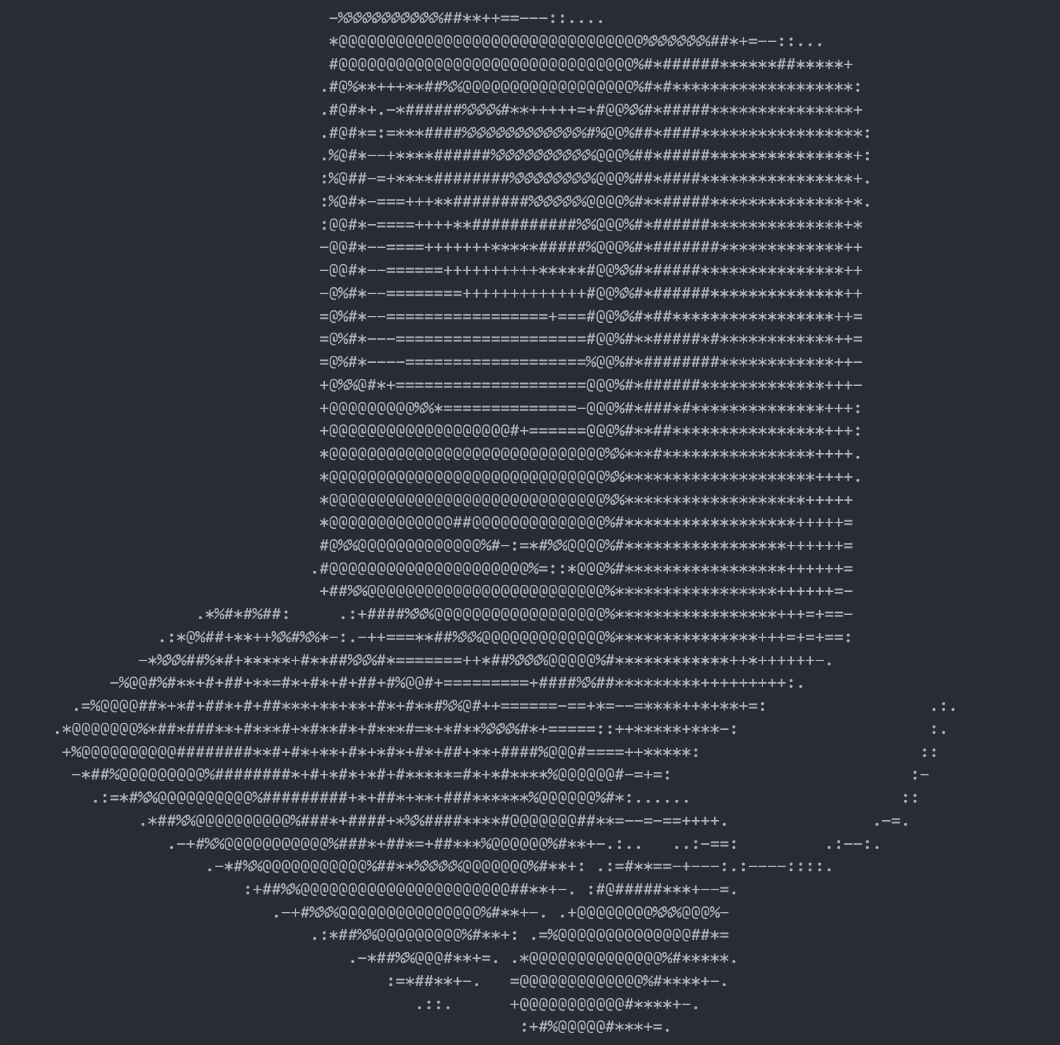 *@@@@@@@@@@@@@@@@@@@@@@@@@@@@@@@@%%%%%%%##*+=--::...