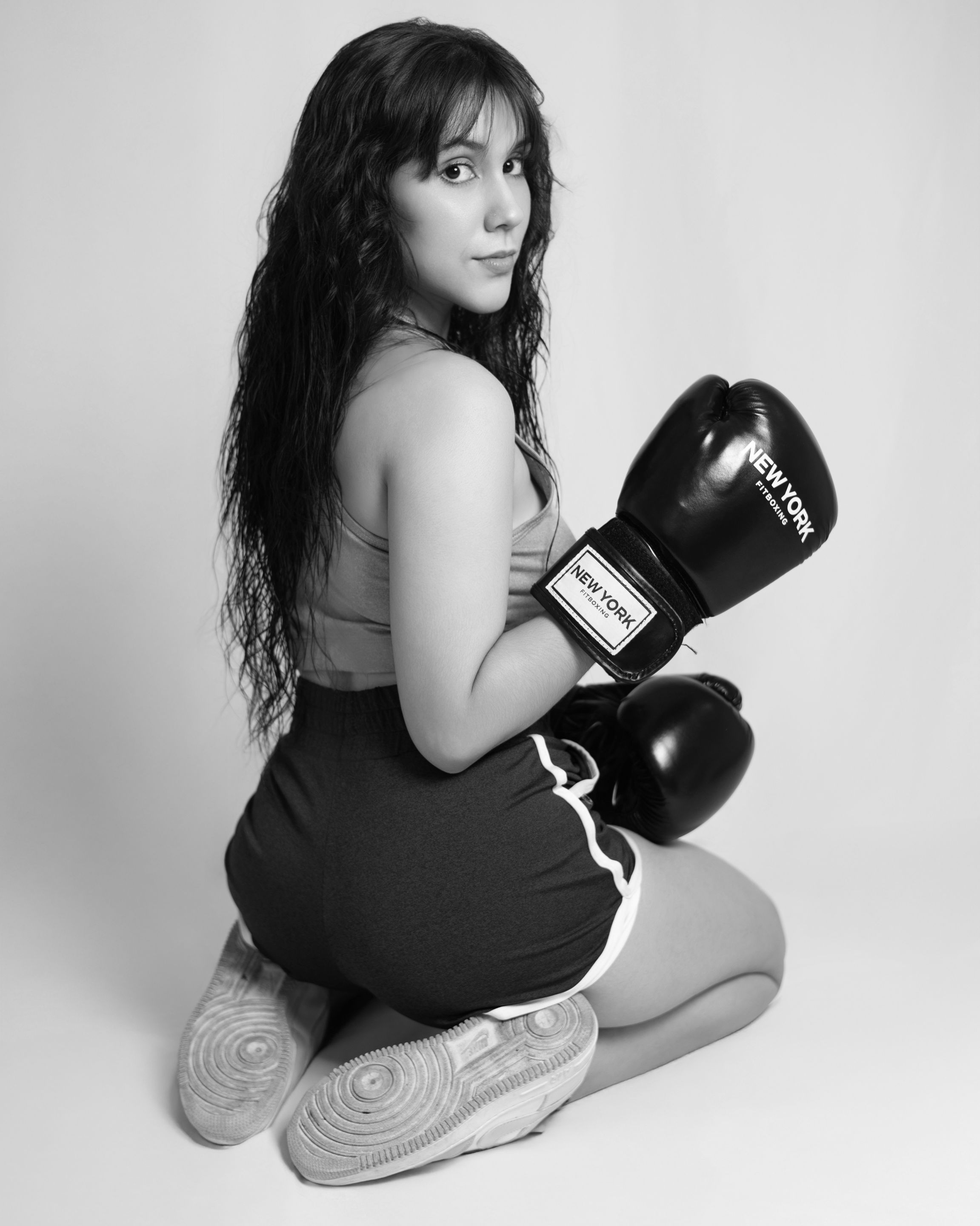 My idea was to focus on boxing, but the girl wanted to add her touch of femininity to the poses, so we took most of the photos on the floor: