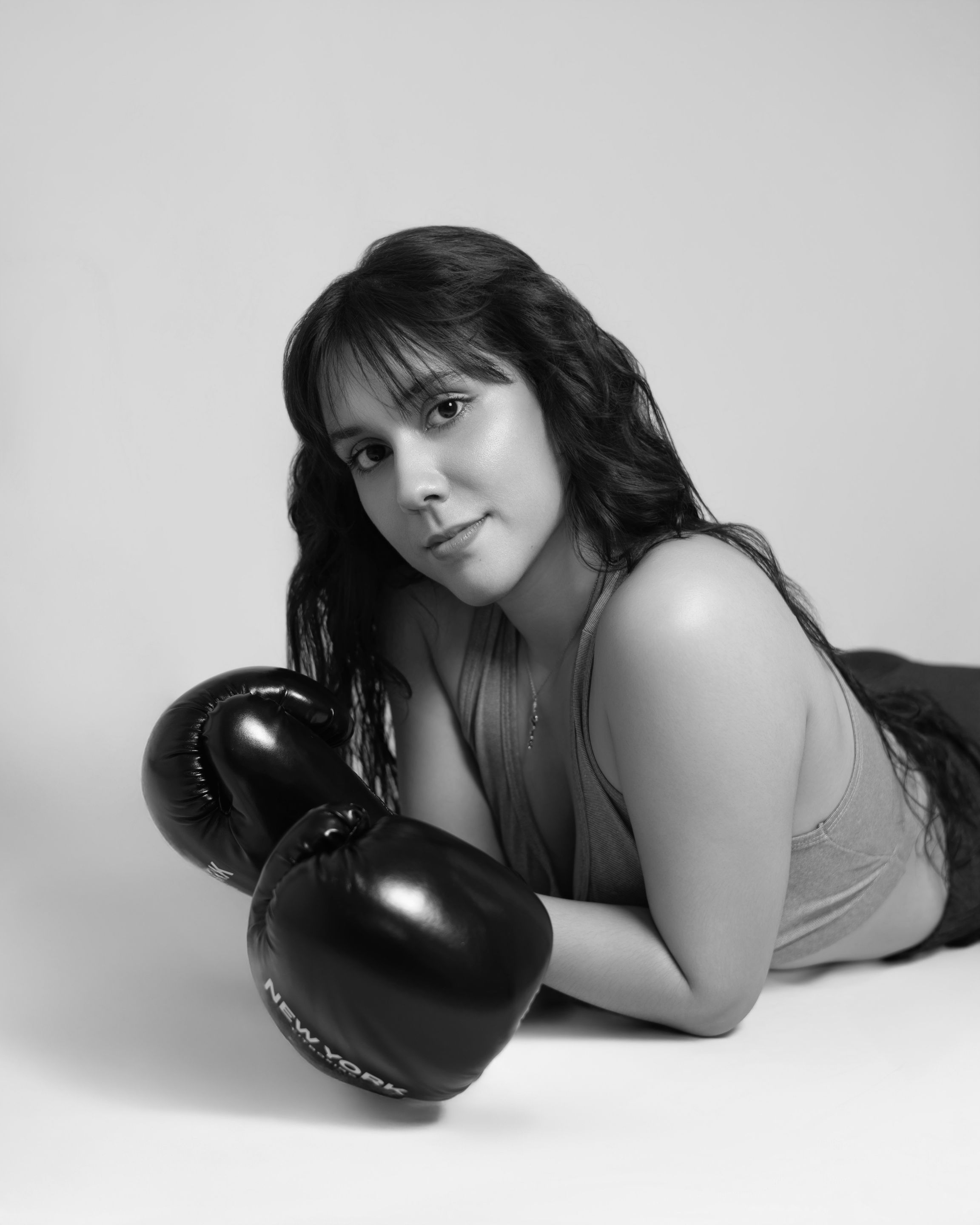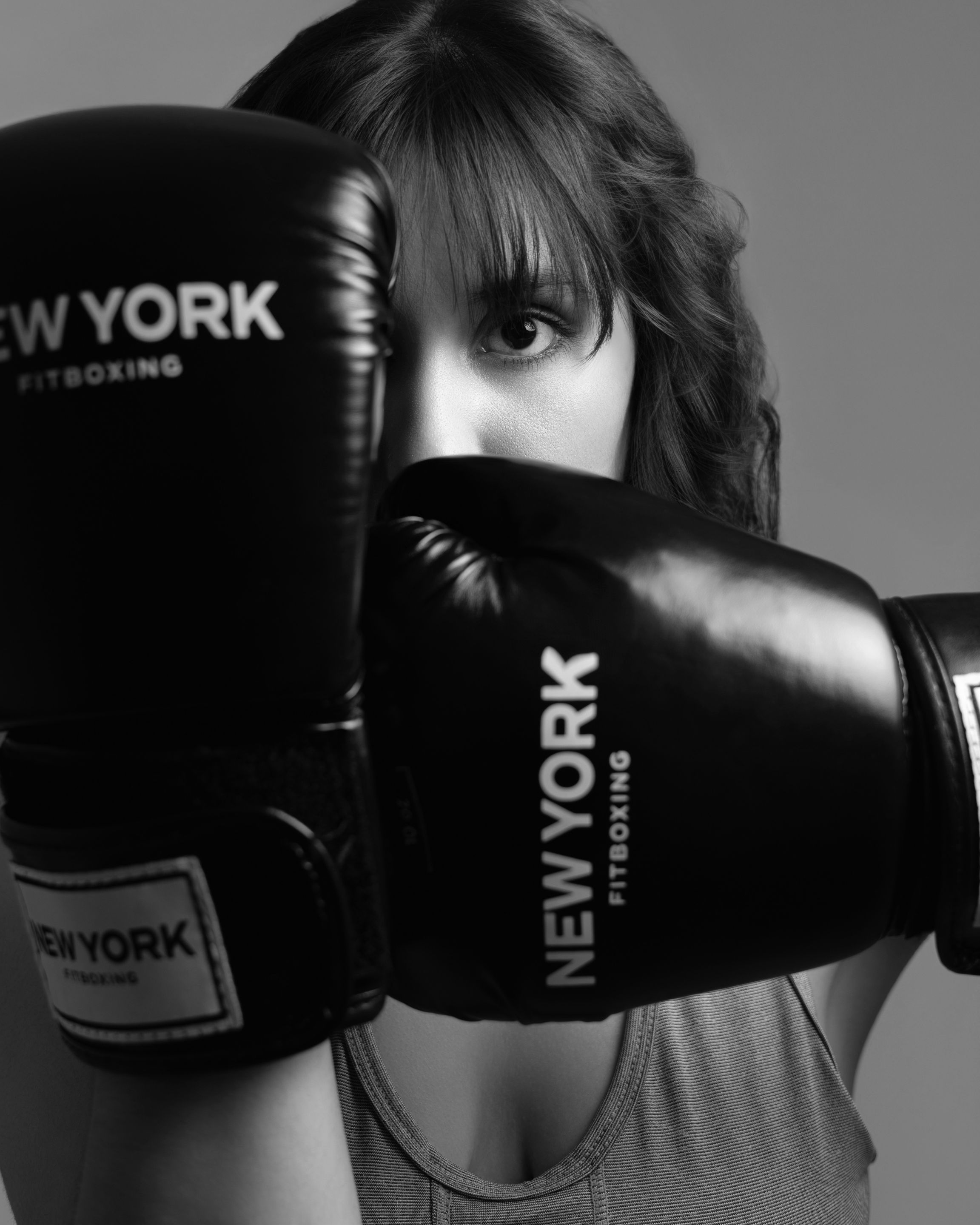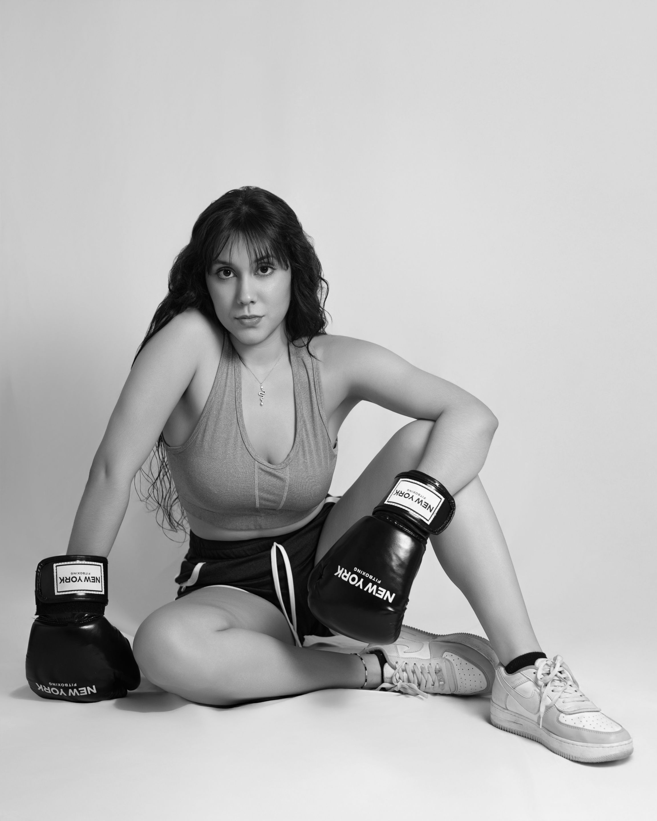 The focus of the next photo was the girl's face, so we chose a pose where the gloves could also be seen. We didn't want to fall into the typical cliché photo of the person in a guard stance.