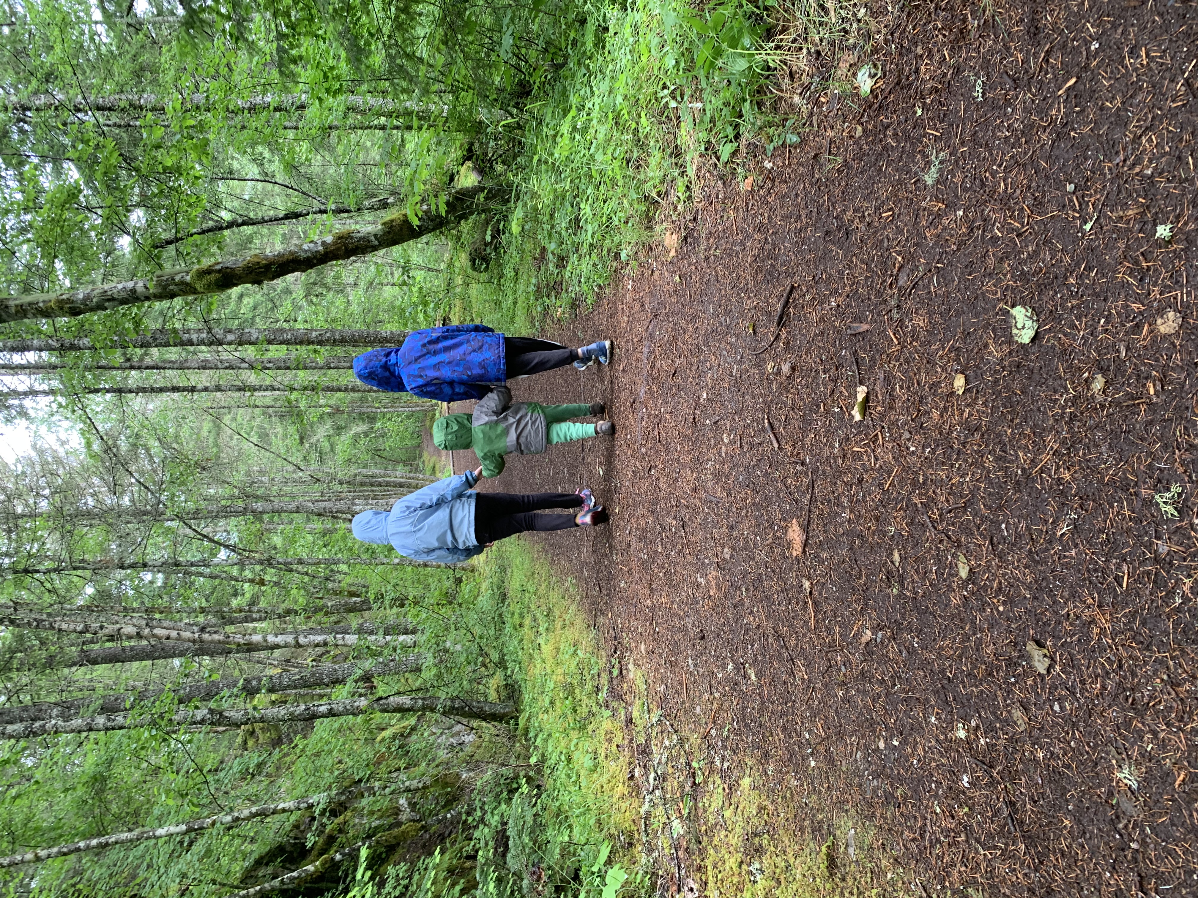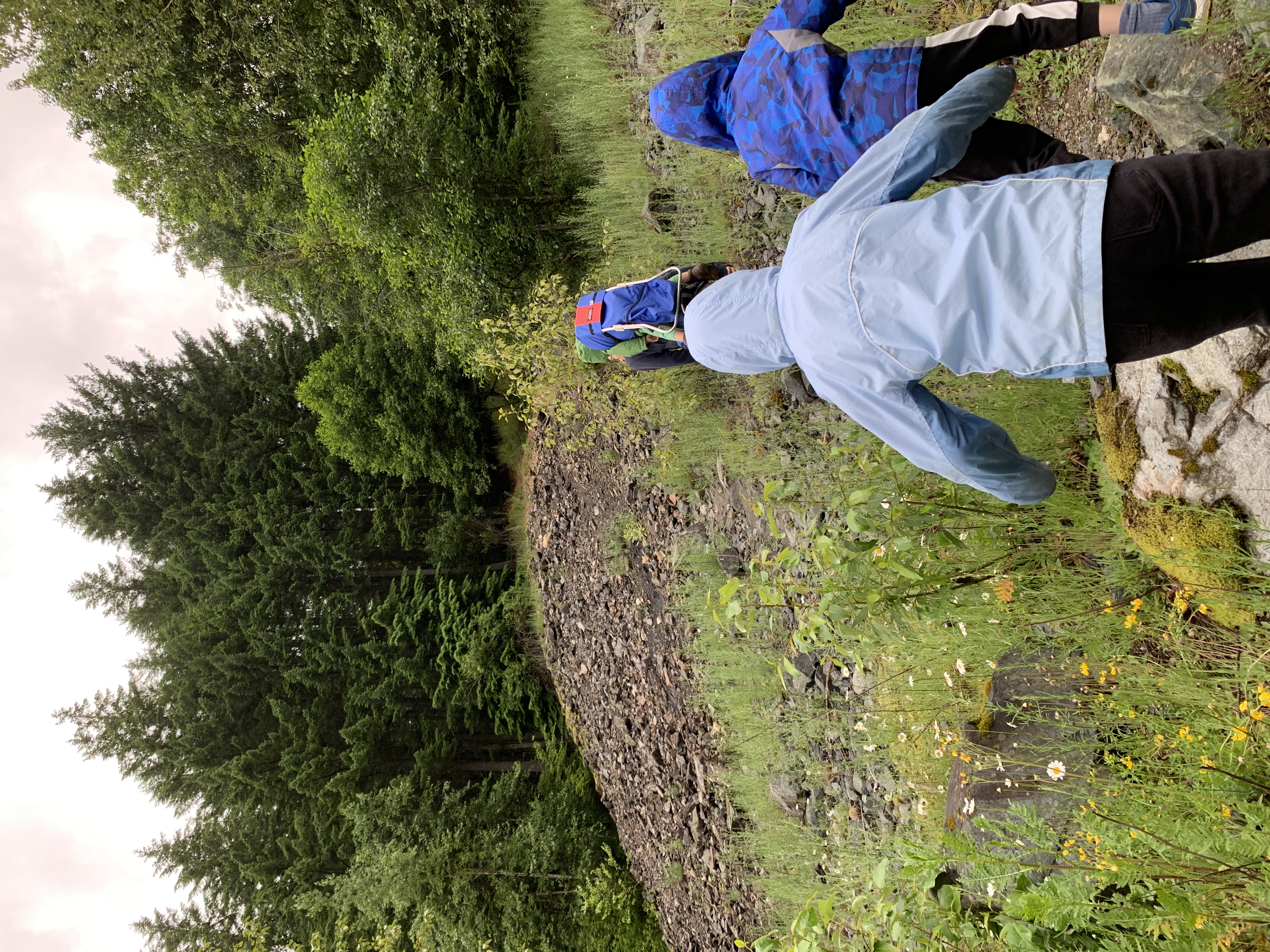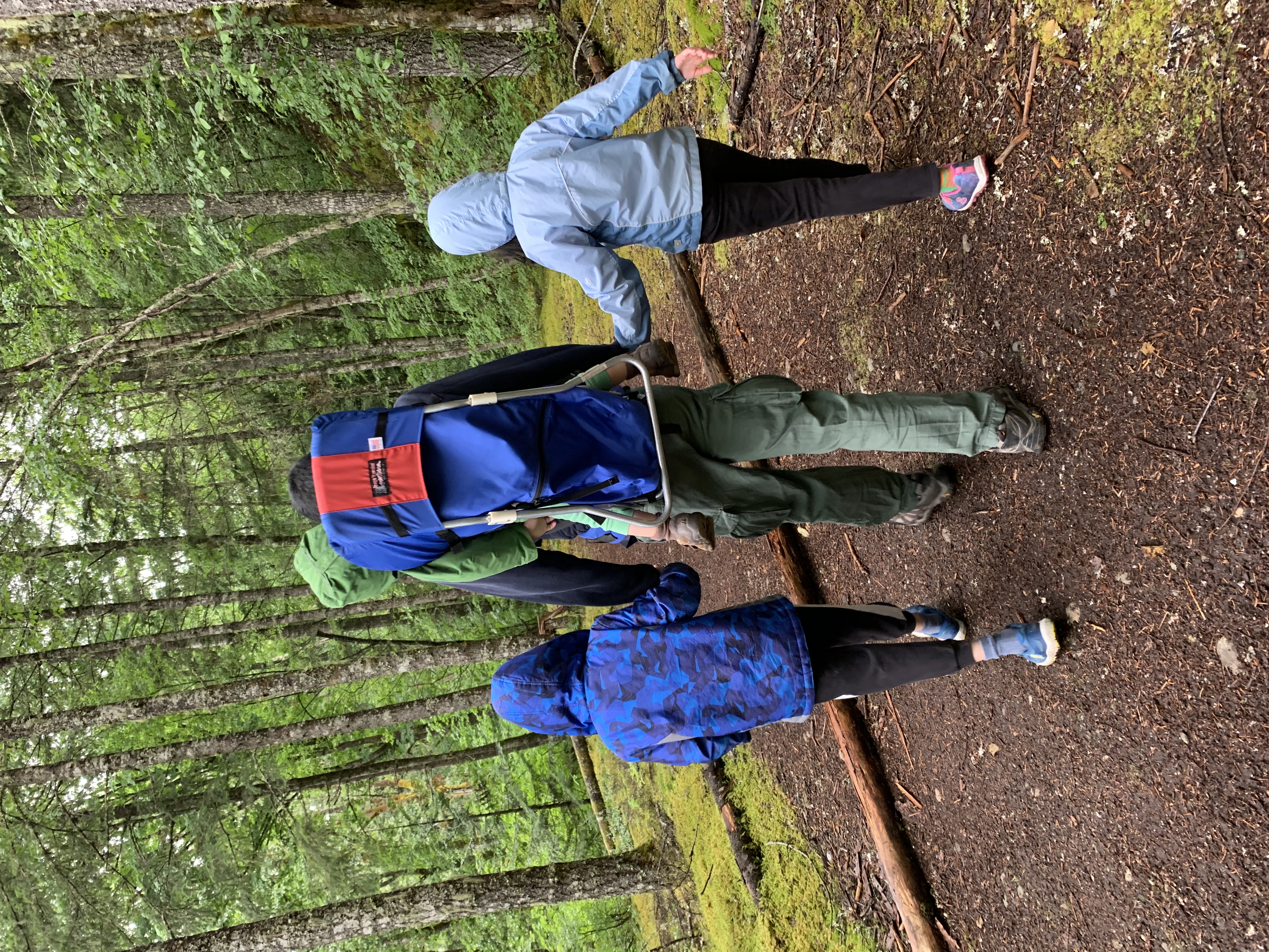 We let our little one down from the carrier and walk on his own in this level section. This was five years ago, they were so small back then.