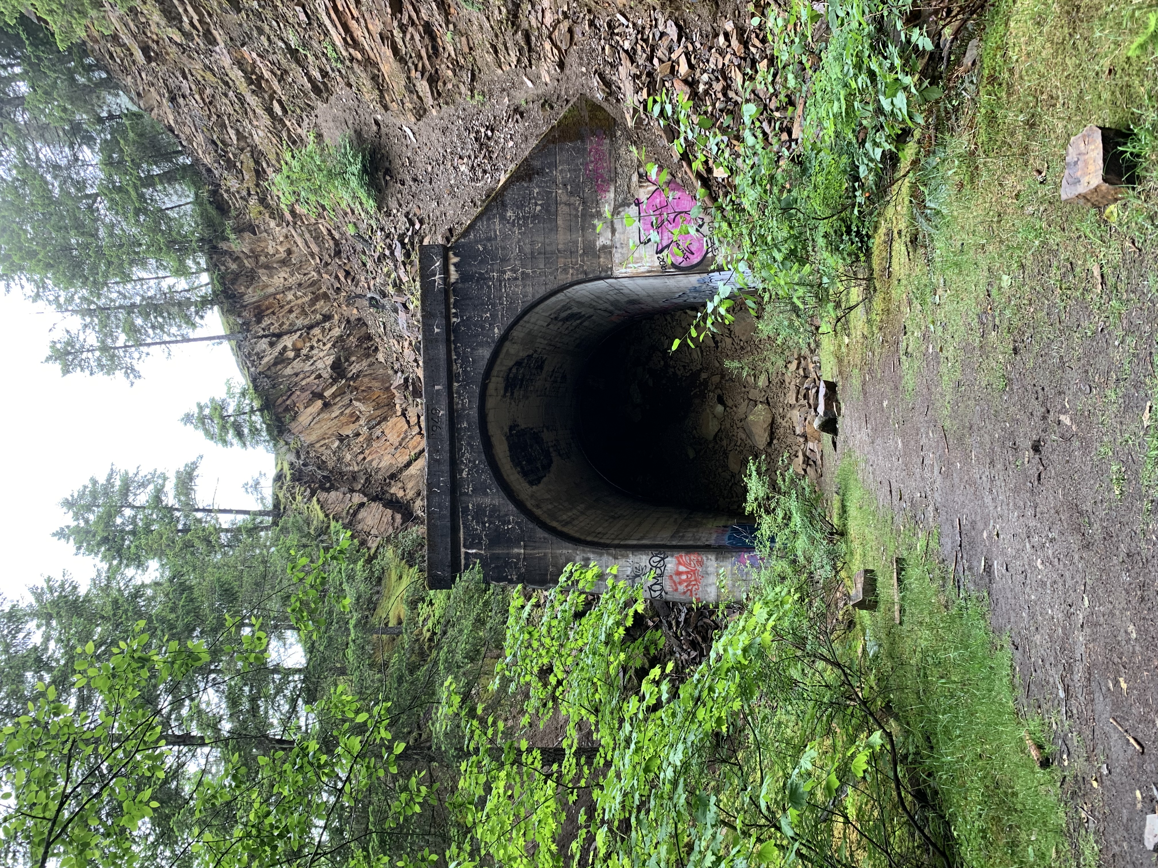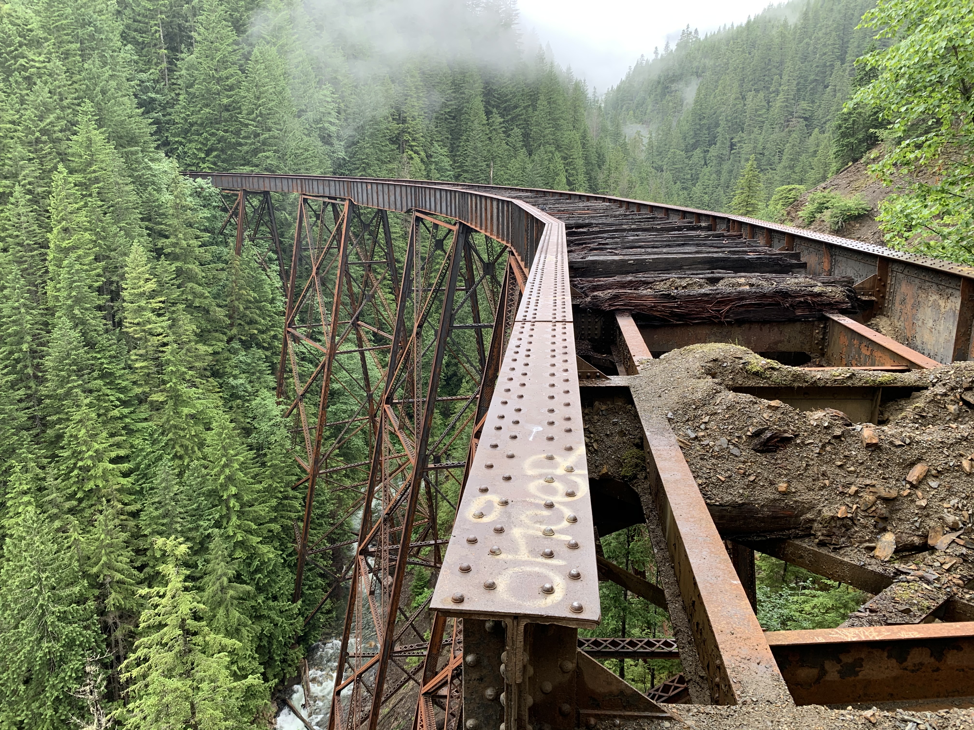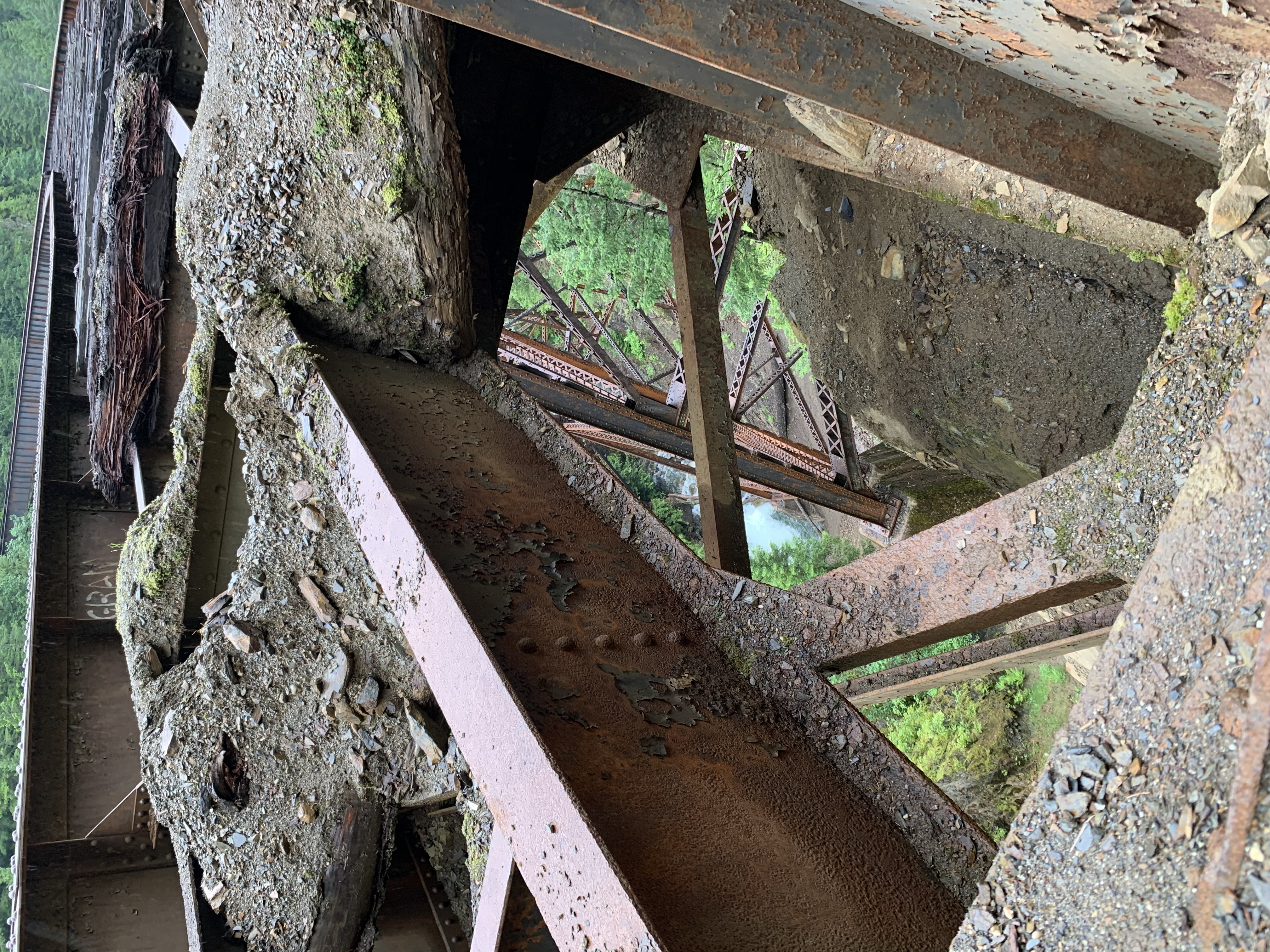 The trestle had been abandoned a long time and seemed to be in pretty bad shape, even though it appears to be intact. The rail sleepers looked rotten.
