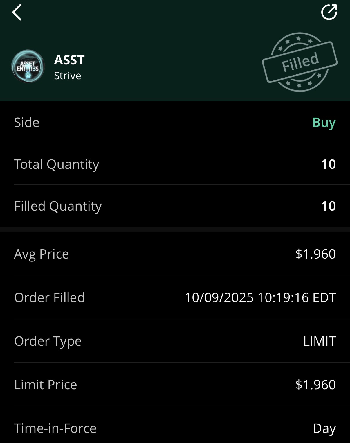 6. Strive (ASST: 1,630 sats/share, $2.01/share)