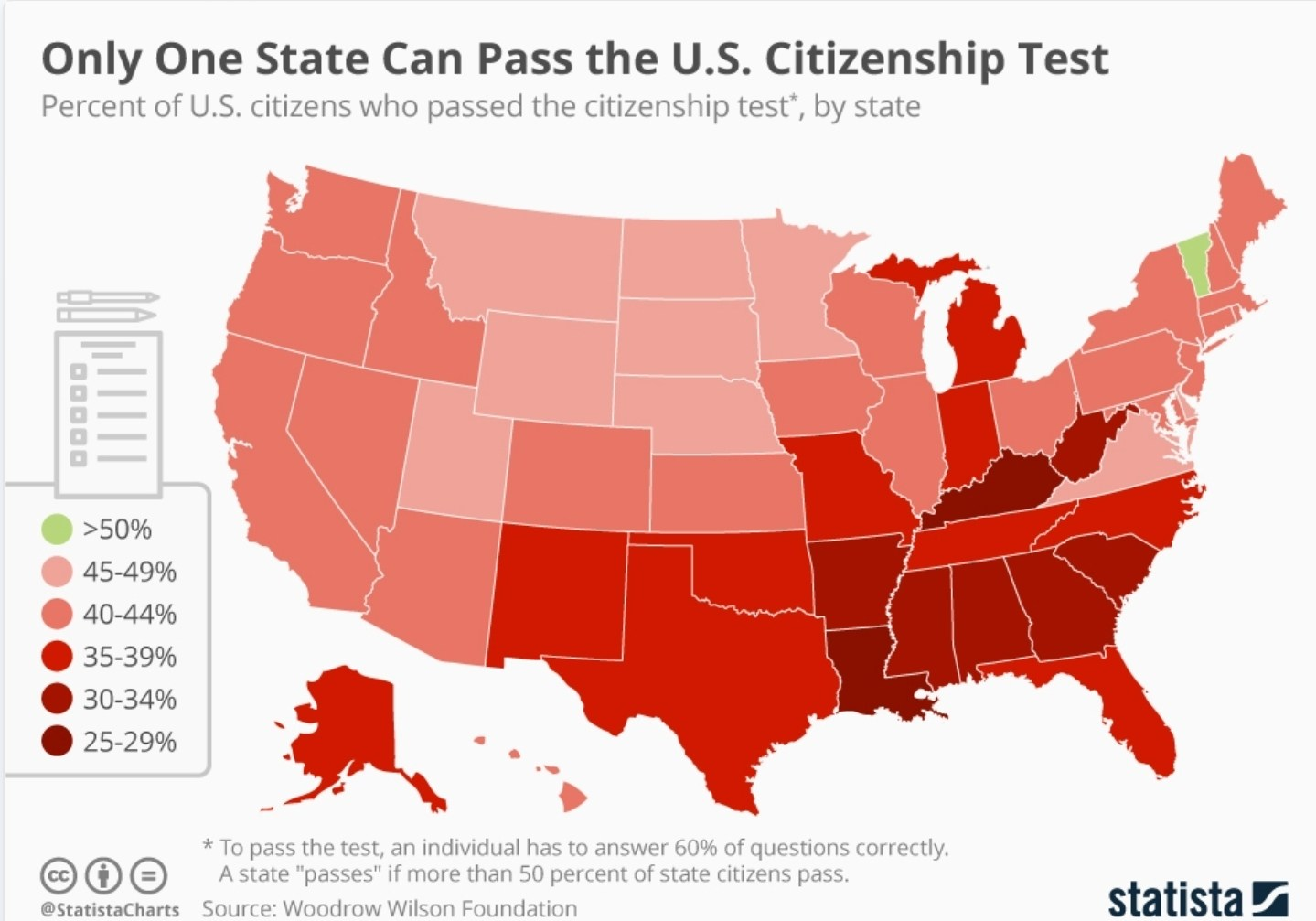 I still remember in American History class in high school we took a states quiz to name all 50 states on a map. One girl only got 3 states correct.