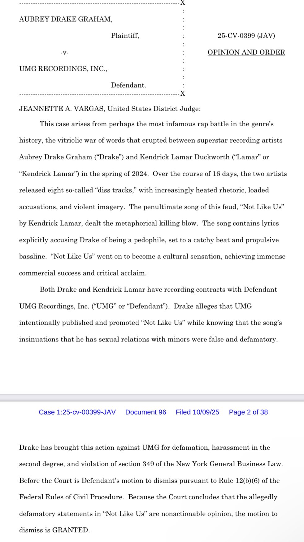 Because the Court concludes that the allegedly defamatory statements in “Not Like Us” are nonactionable opinion, the motion to dismiss is GRANTED