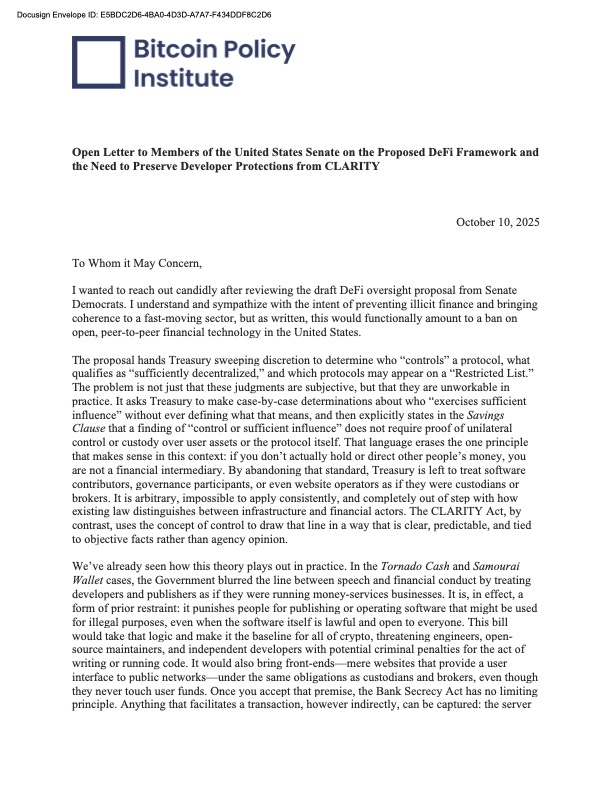 Yesterday, Senate Democrats produced their own version (Google Doc link) of regulations for DeFi and it is, apparently, quite bad.