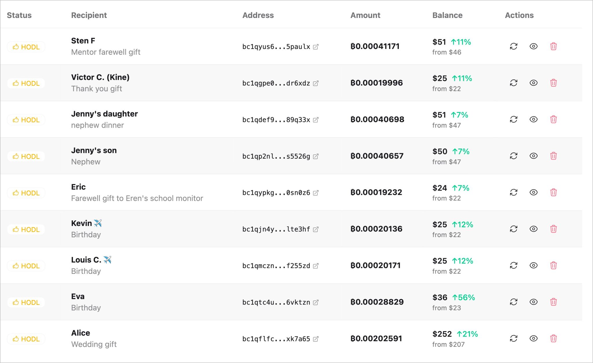 This is an app to help gift Bitcoin and Stephane created this feature where you can see what happened to the gifts you gave :D