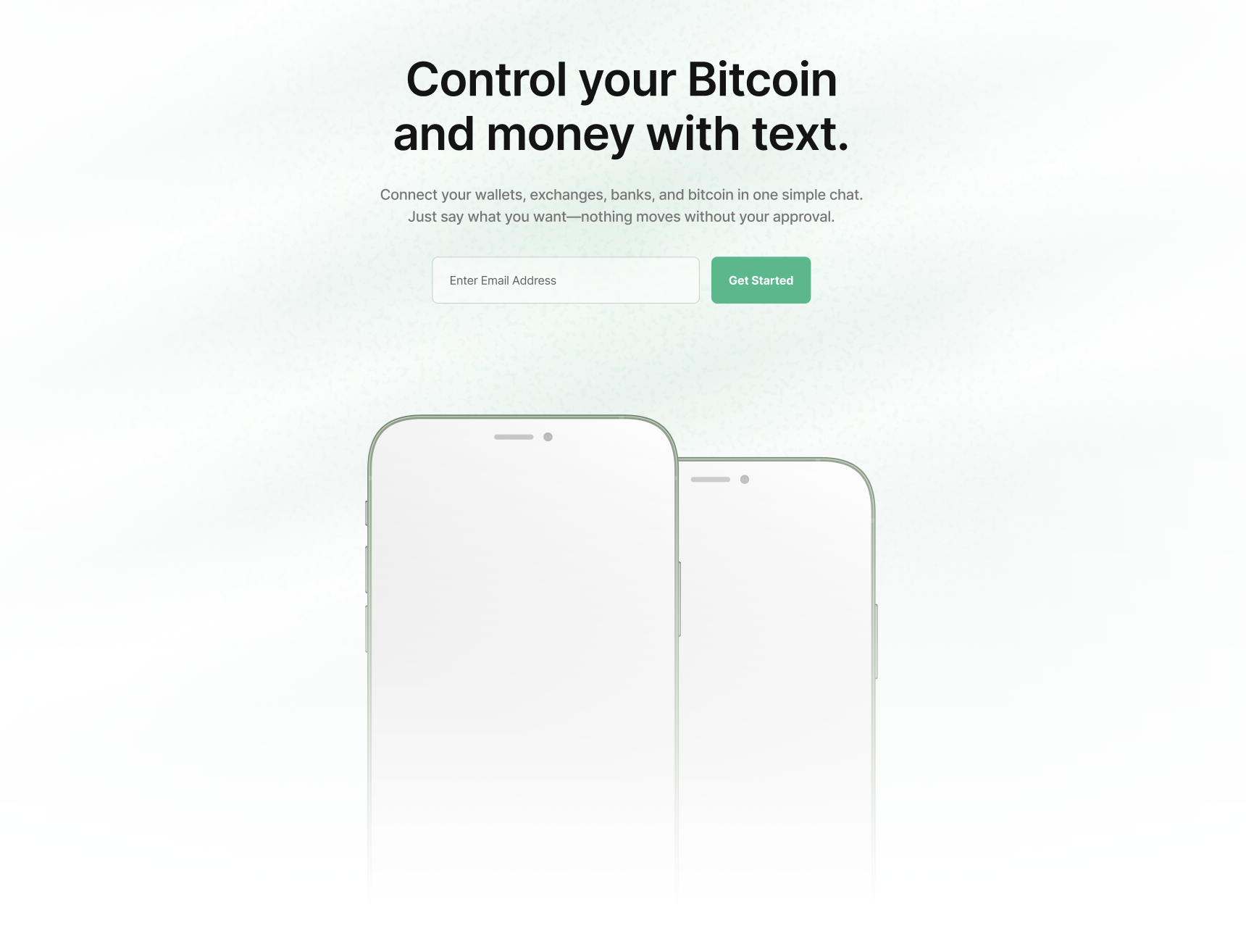 “Control your Bitcoin and money with text.” I’m not sold on this headline yet, so we’re still working on it.