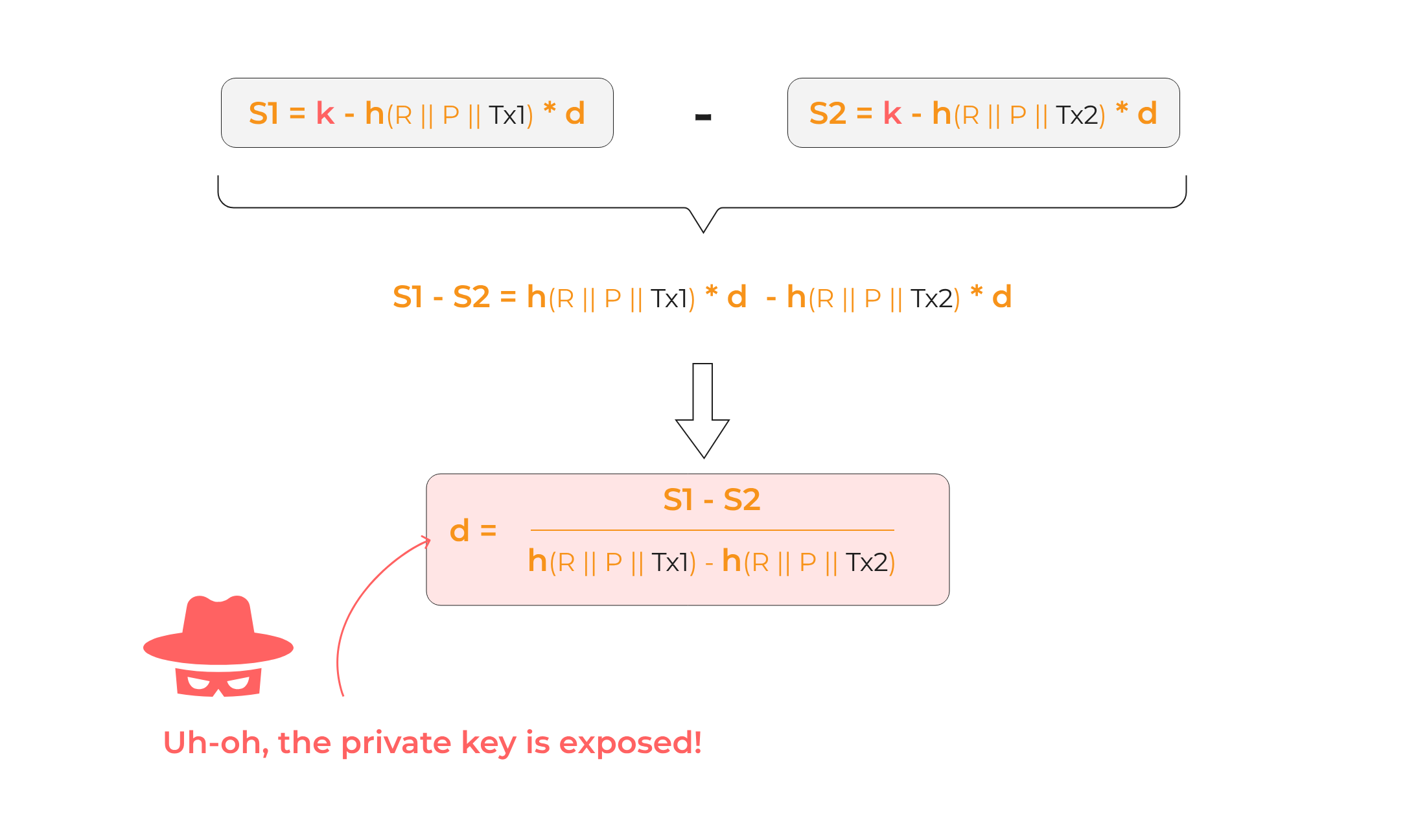 An attacker (or anyone observing both signatures) can compute: