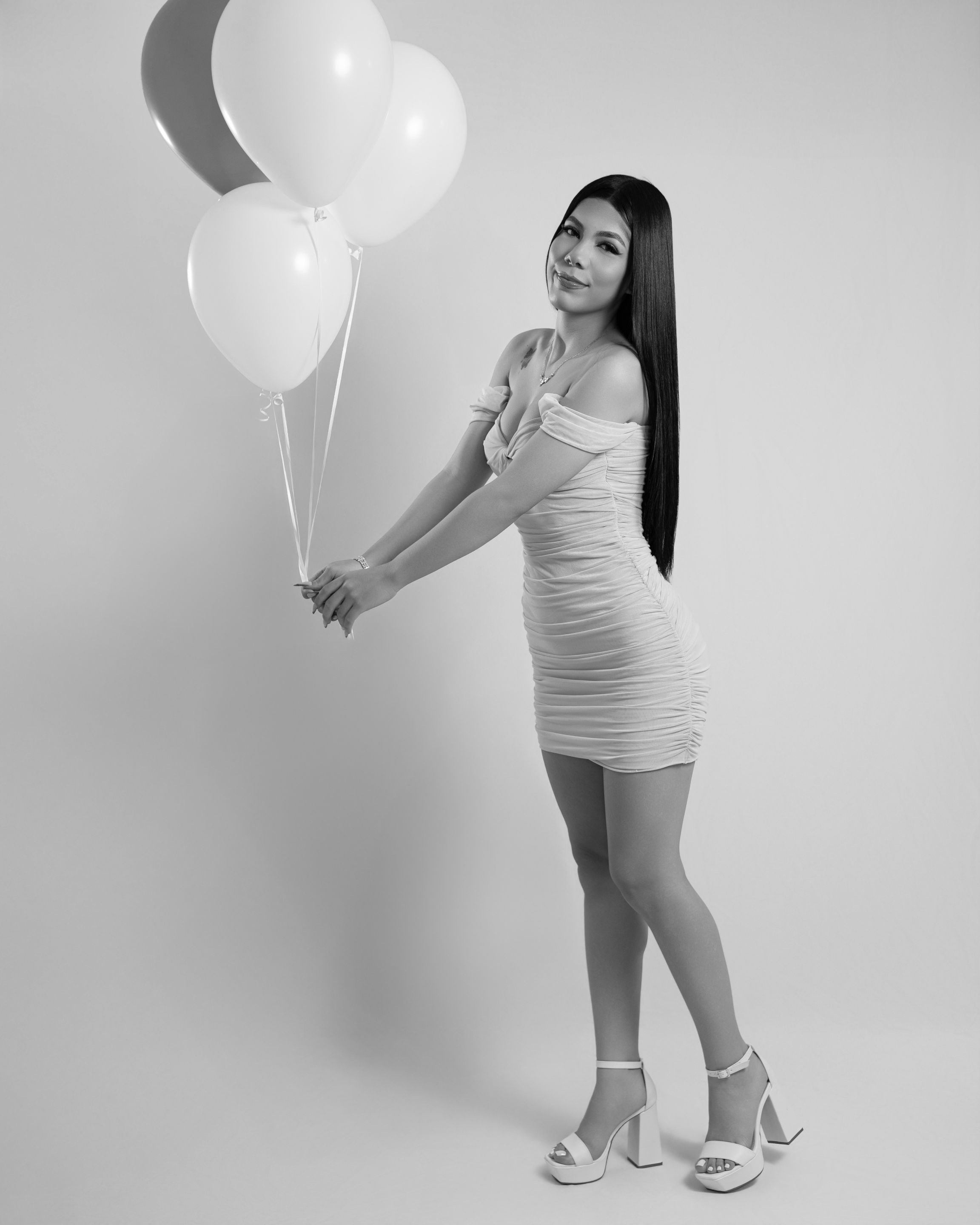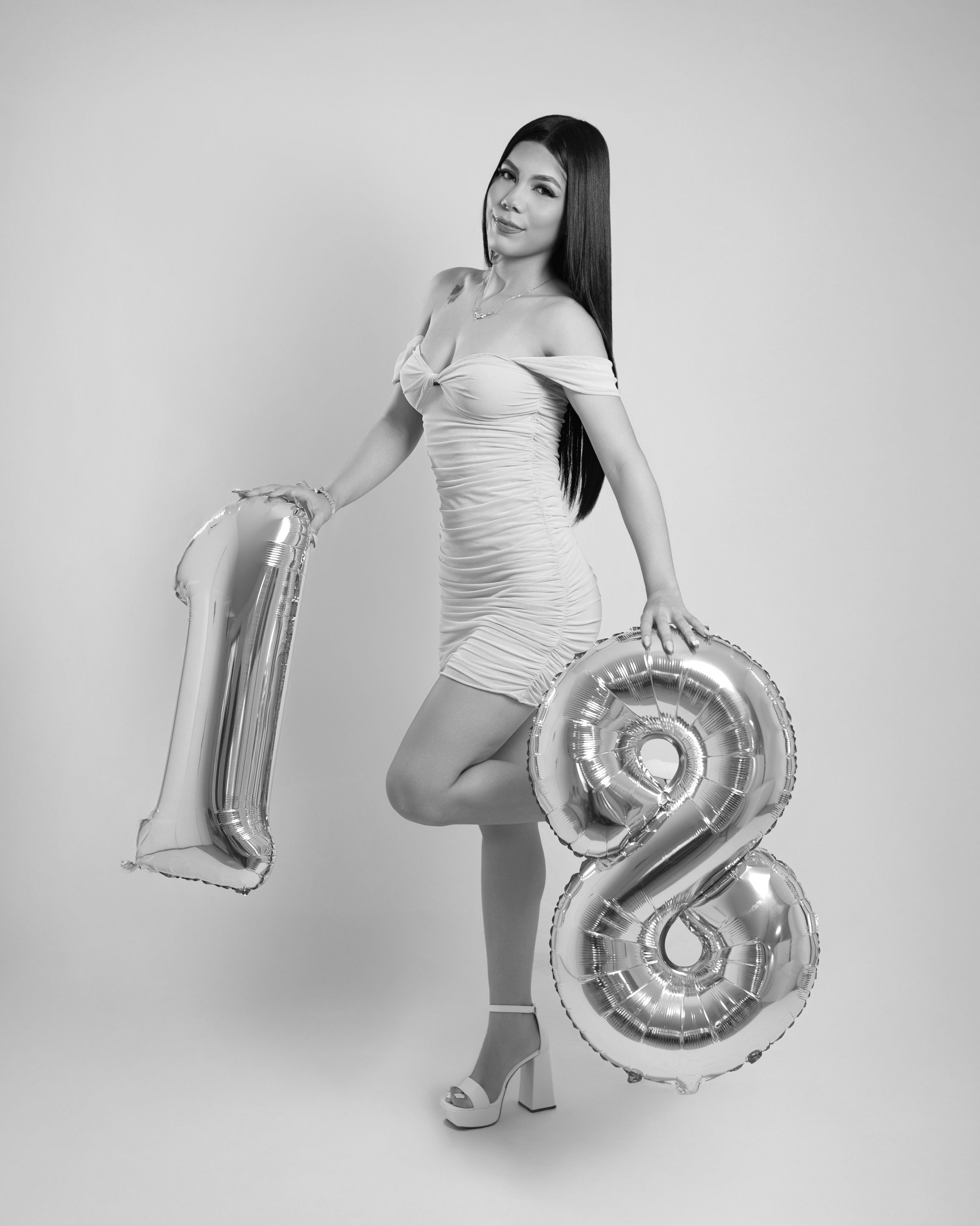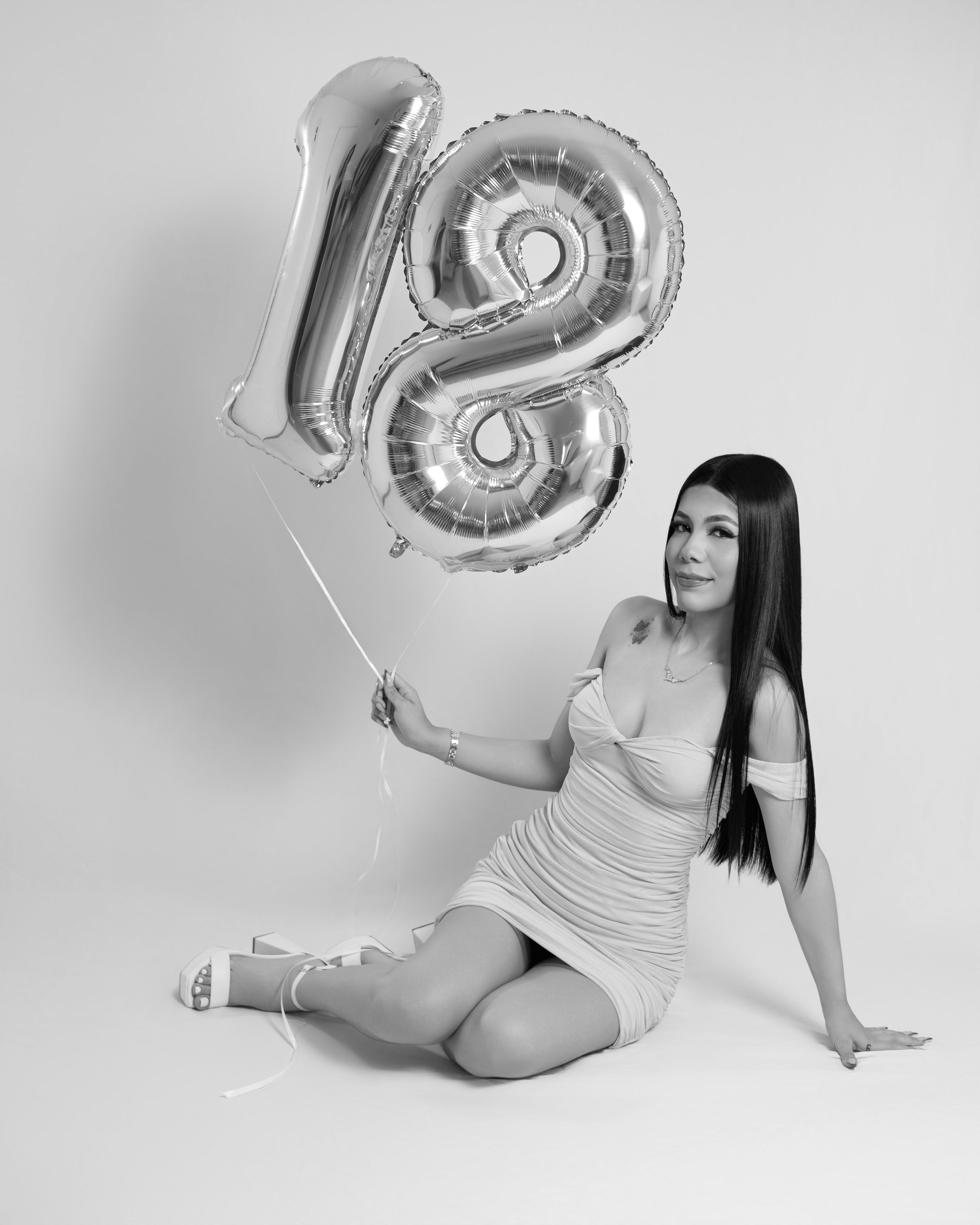 Then we proceeded to take a couple of photographies with the number 18 balloons. First, we took a couple of standing photographies and then some on the floor: