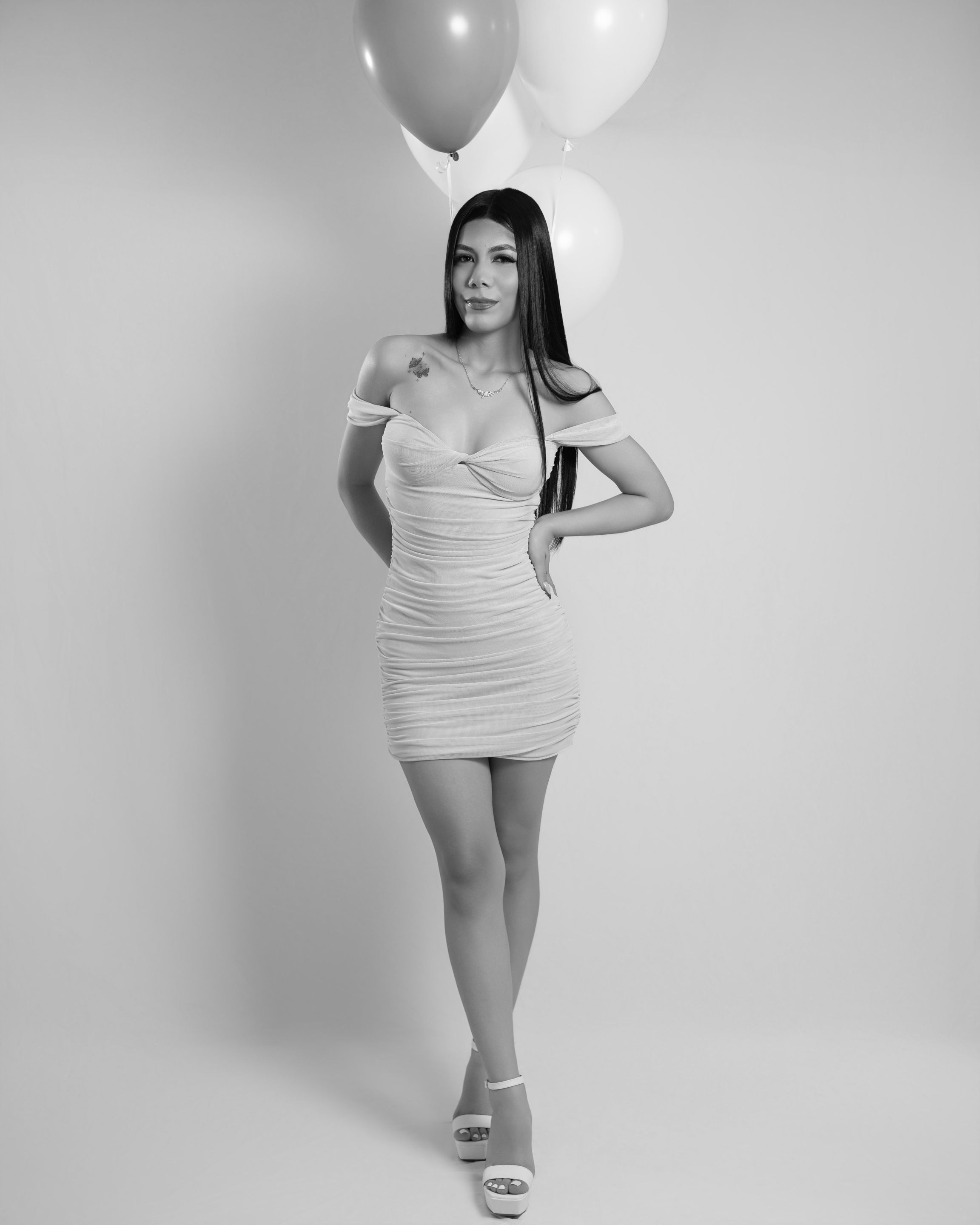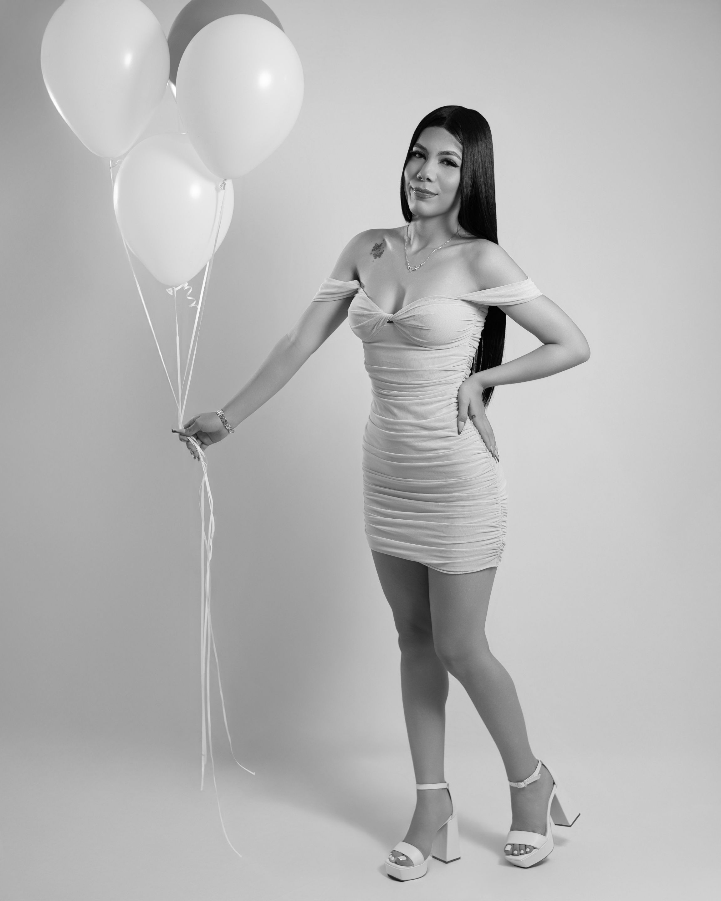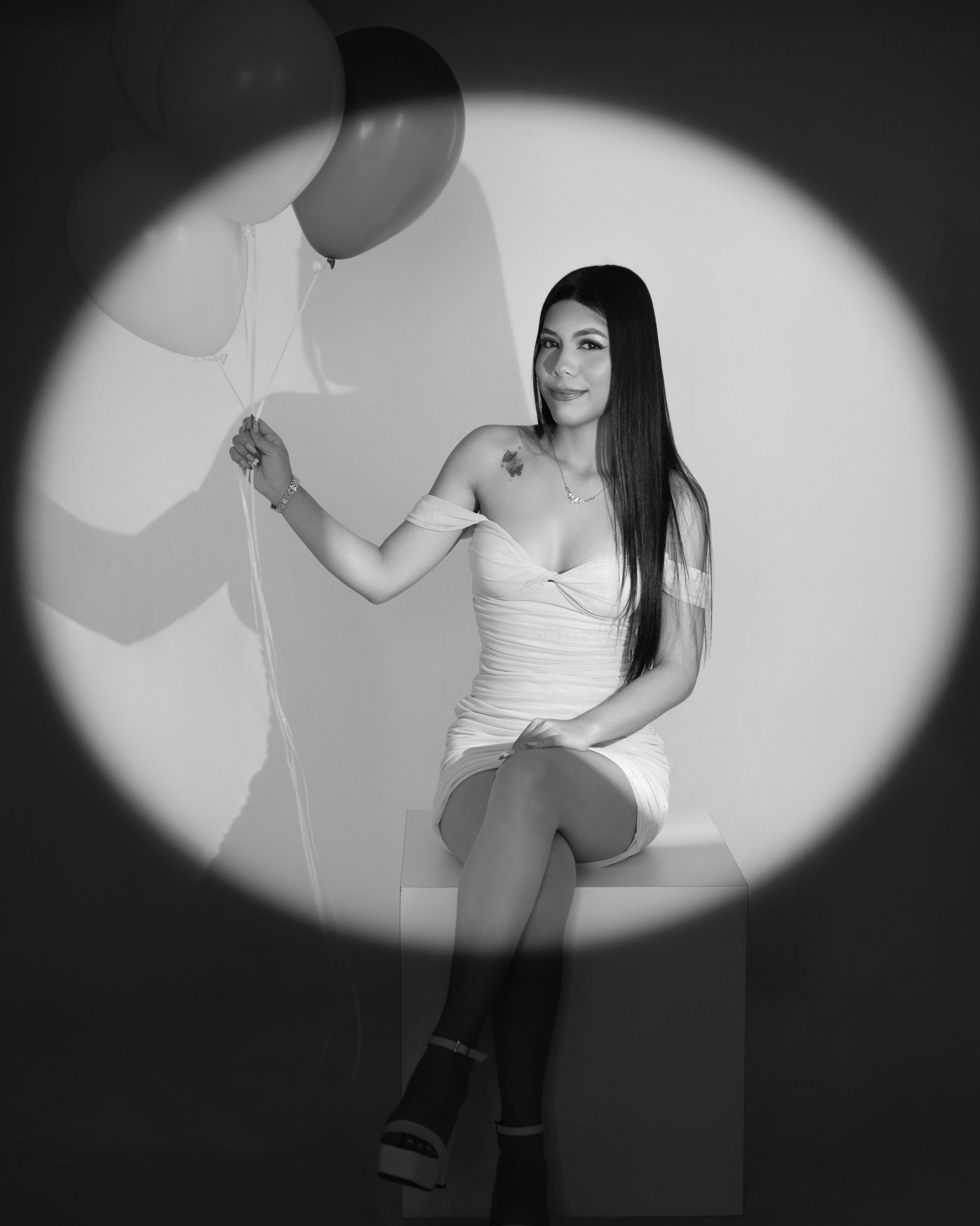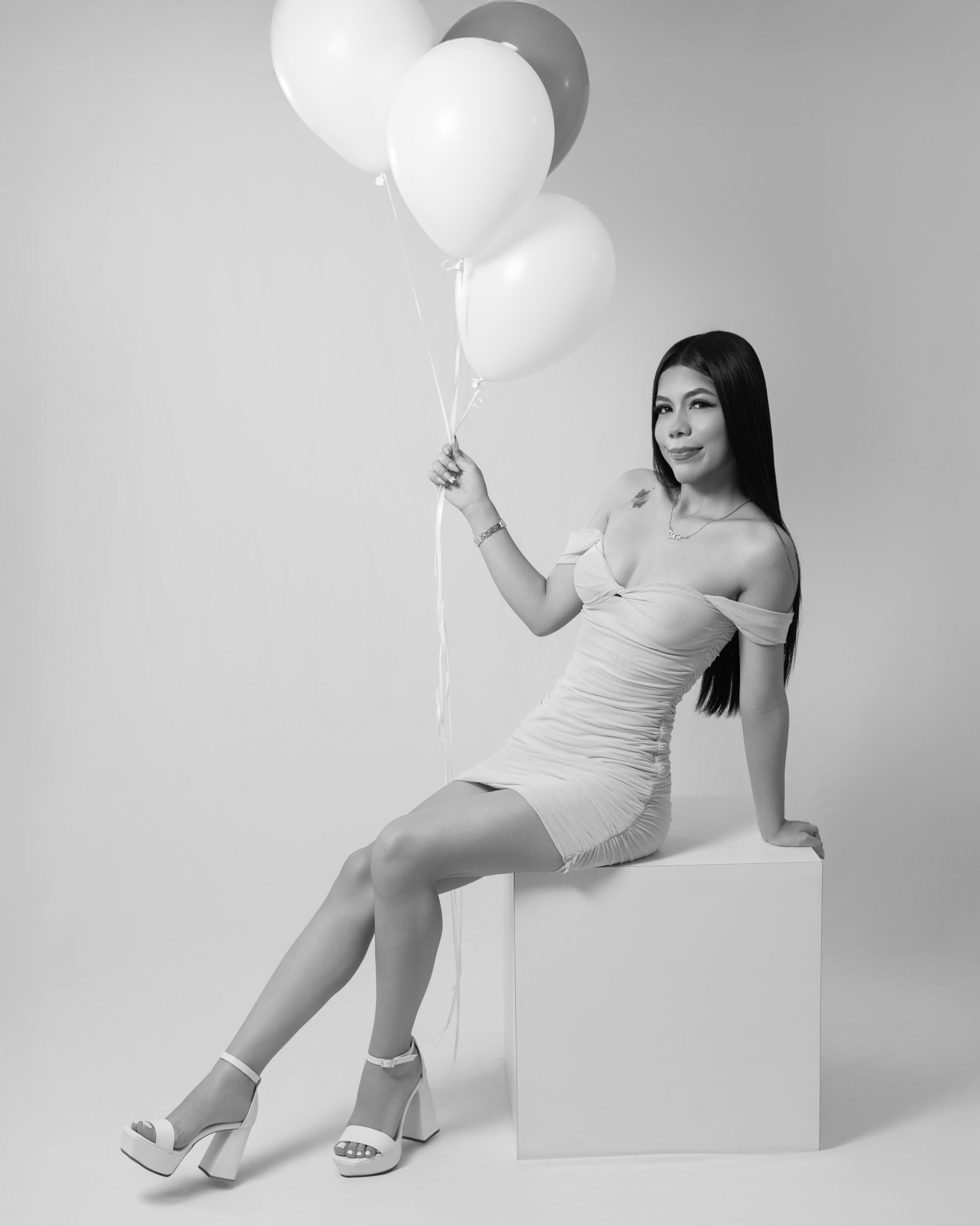 Then we proceeded to take a couple of photographies with the number 18 balloons. First, we took a couple of standing photographies and then some on the floor: