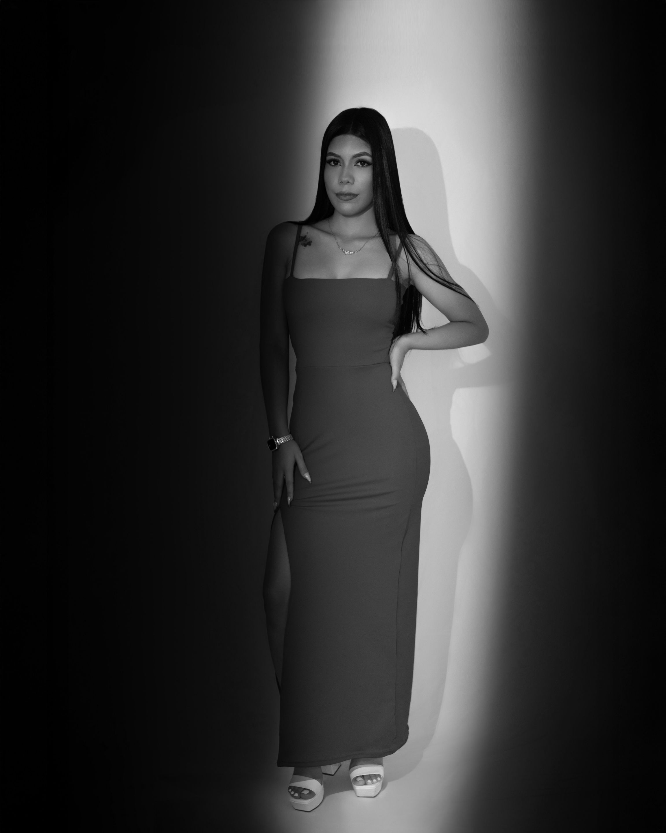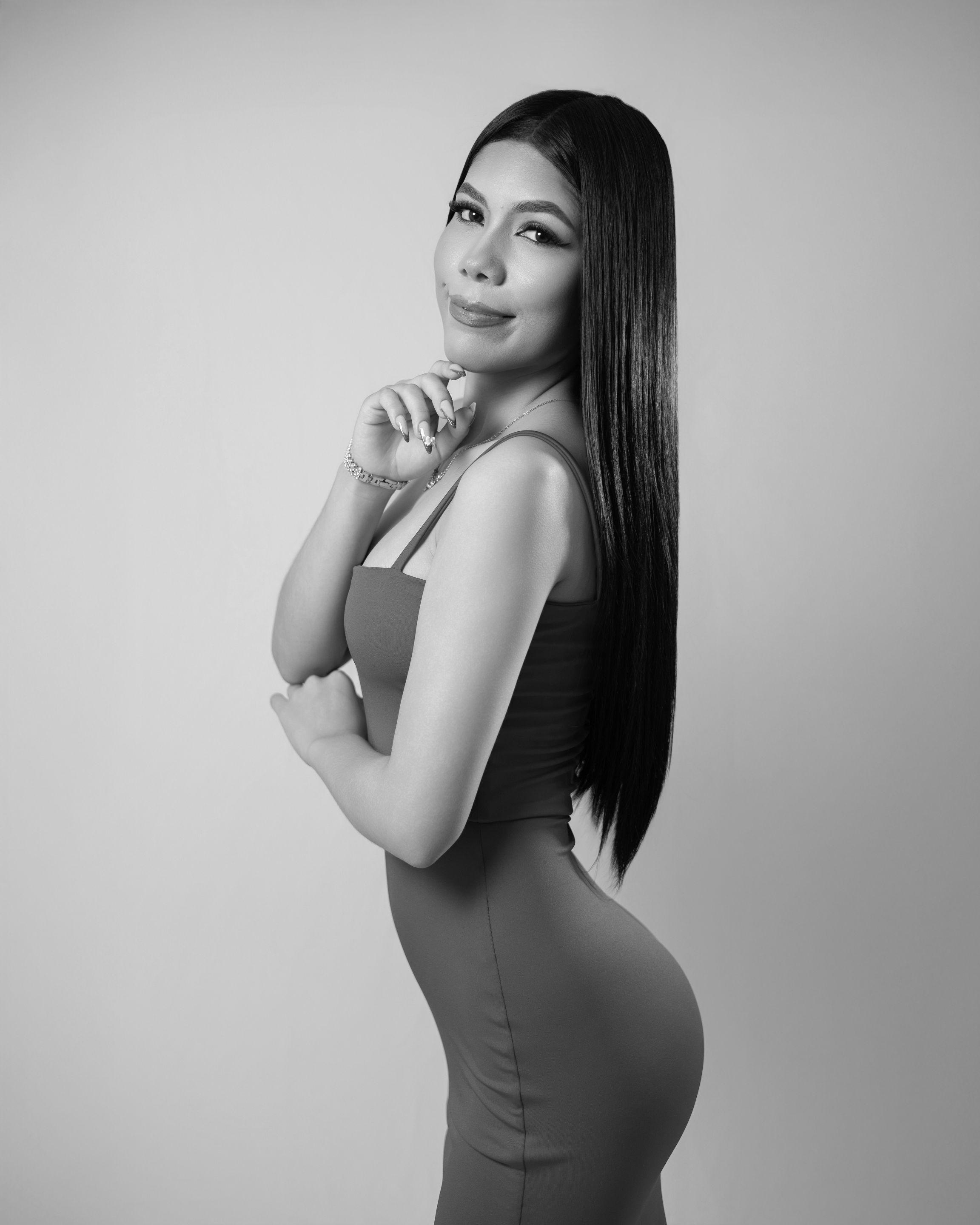 It was the girl's first time in front of a camera, so at first, she was a bit nervous. To help her relax, I guided her with the poses: