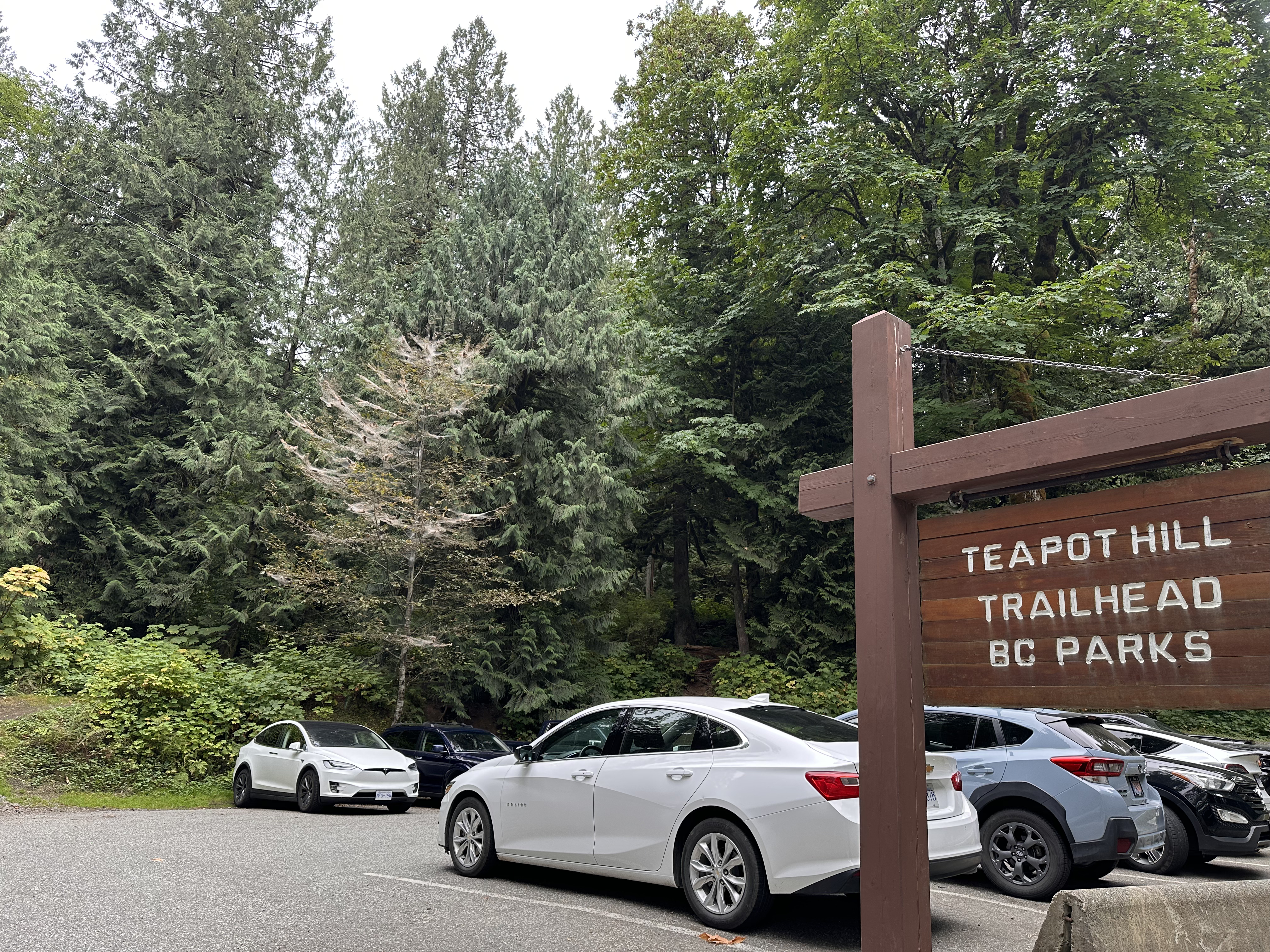 This week, we head to Teapot Hill located in Chilliwack, right next to Cultus Lake. The trailhead and trail is in Cultus Lake Provincial Park, and its parking lot is quite small, with only about 10 or so spots. As such, it is a good idea to go early in the day to ensure a parking spot. The trail itself is a short 5km out-and-back trail with about 260m elevation gain. The trail is well maintained and relatively easy to hike. The first half of the trail is a shared path for mountain bikers and horse riders as well, so you might run into both during your hike. After about halfway, the trail takes a fork and becomes hiking only. It is also after this point that the numerous teacups and teapots begin to show up. Many hikers in the past bring teapots and teacups to this trail and leave them for future hikers to find. We all had a great time seeking out various interesting teacups and teapots. Pictures below are just a small portion of the teacups and teapots we found on the trail. At the end of the trail, the viewpoint was partly obstructed by bushes and trees, but we were able to see Cultus Lake and the nearby town beyond the bushes and trees.