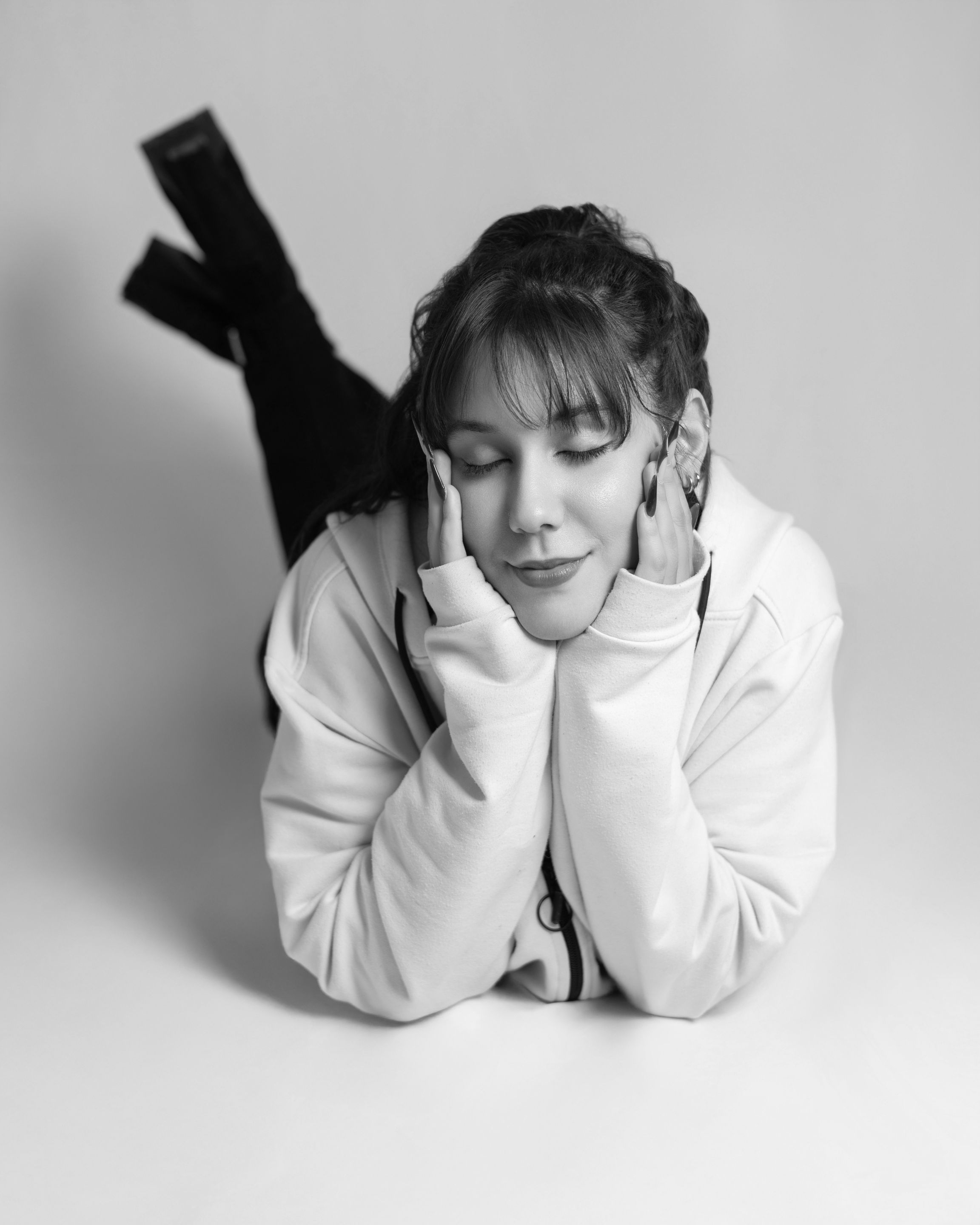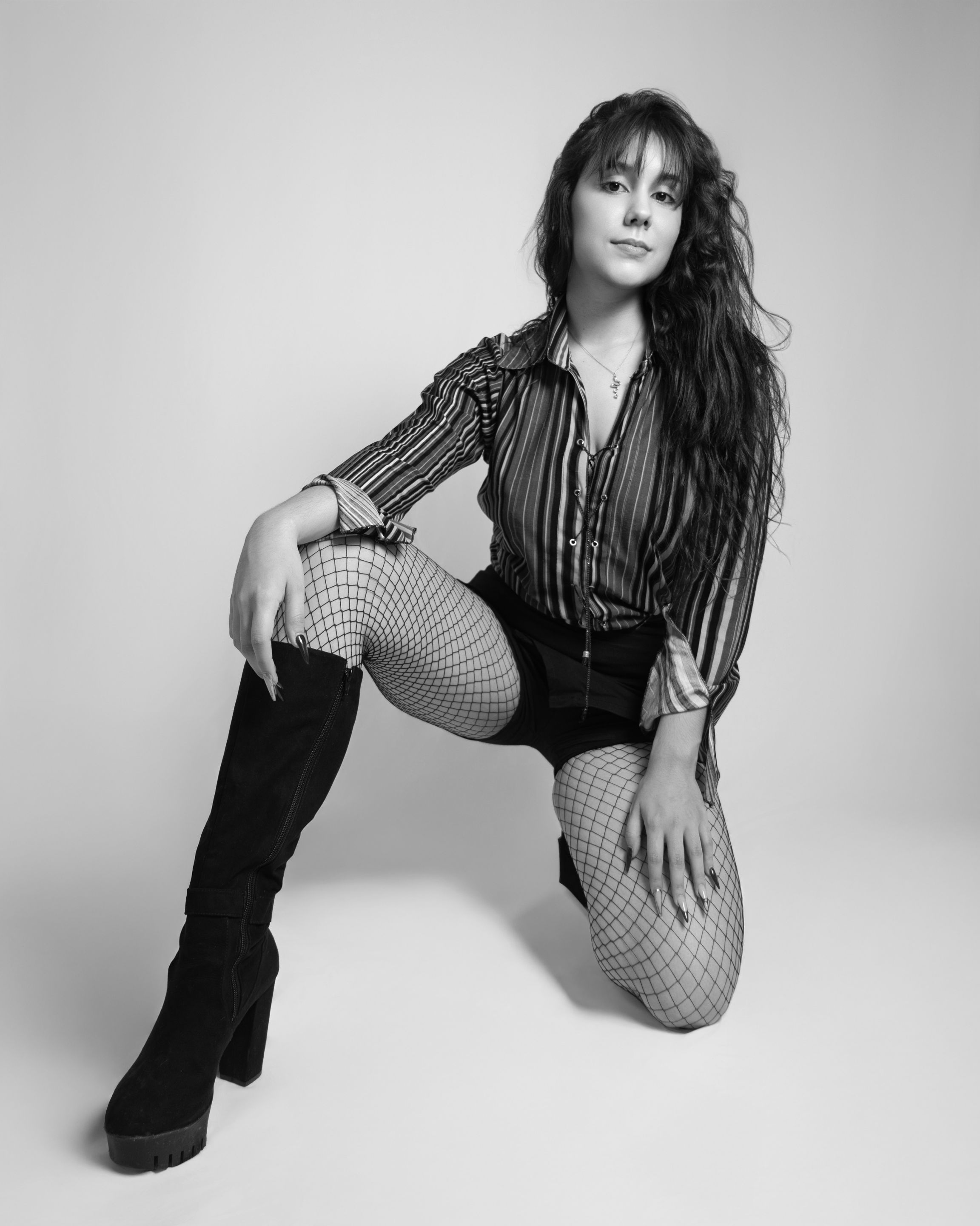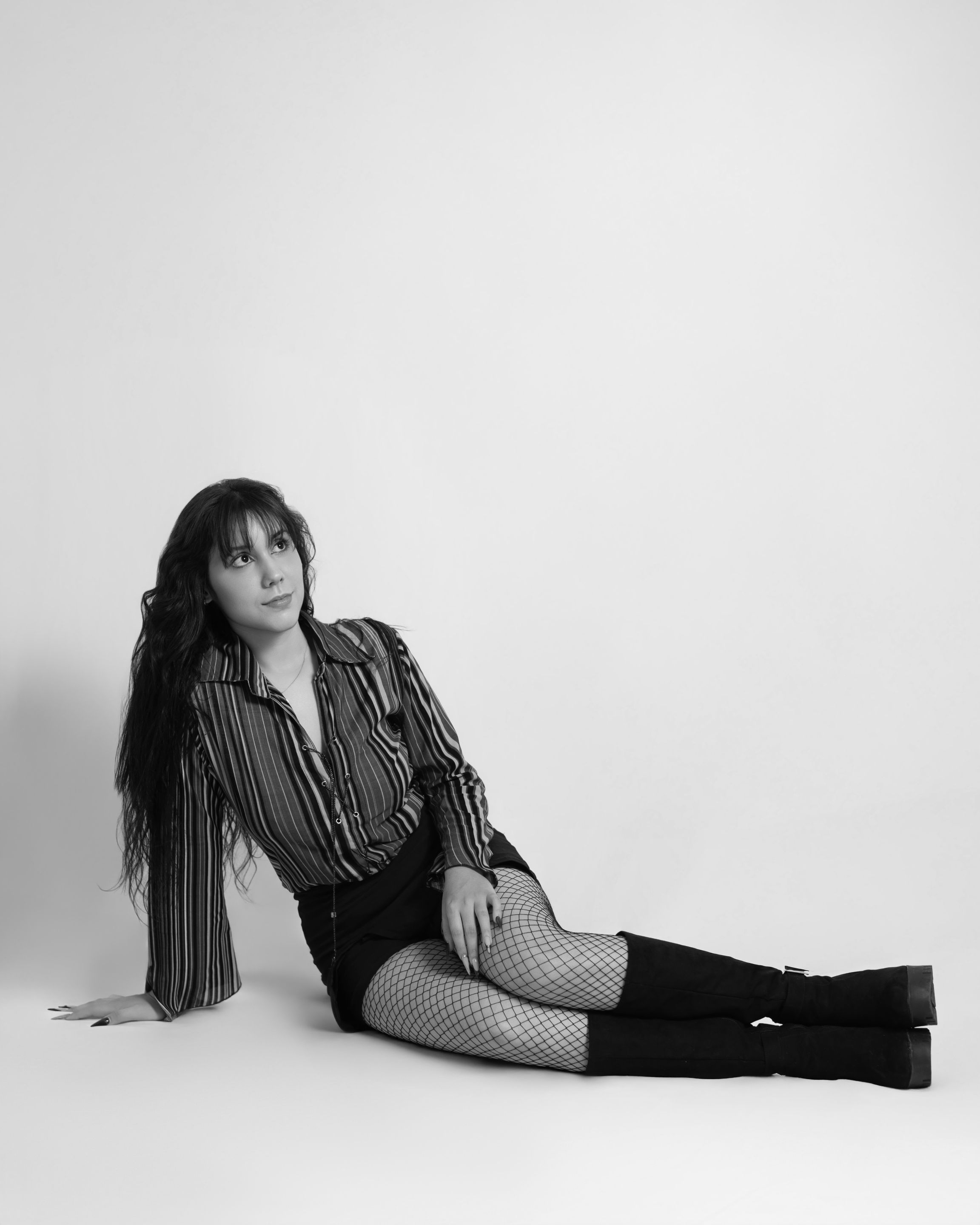 For these first photographs, she intentionally used clothing reminiscent of the 90s to give a more classic look. The girl knew specifically which photographs she wanted with this outfit, starting with a close up shot: