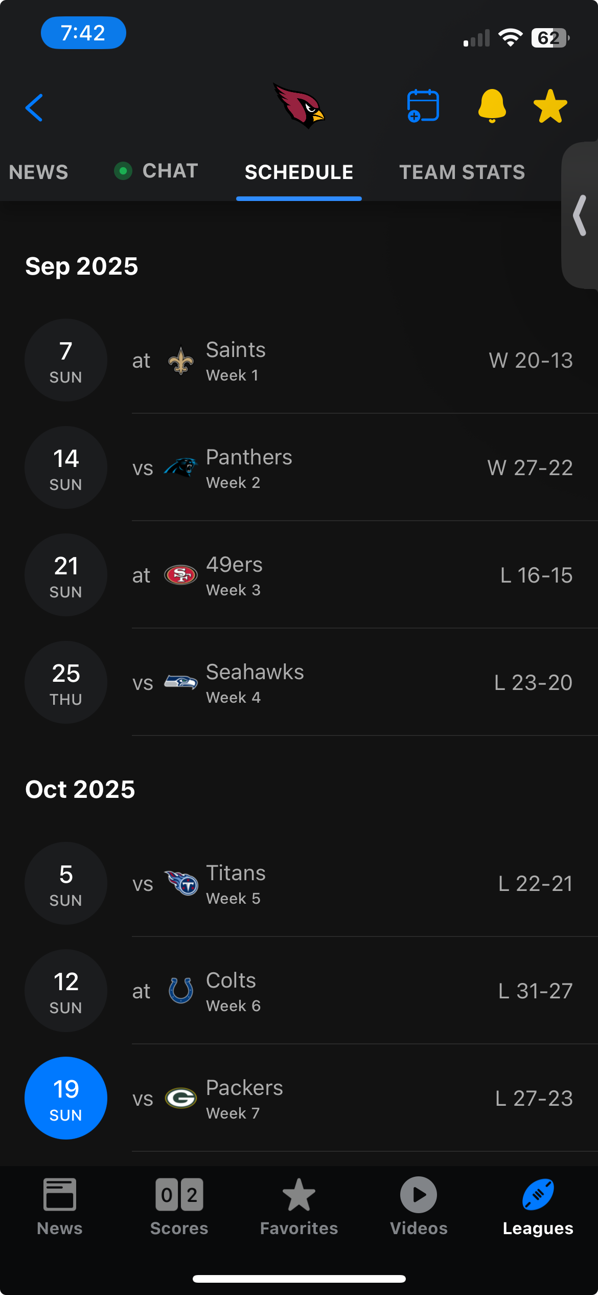 Every game Cardinals have played this season has been a 1 score difference