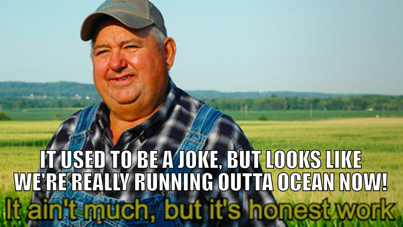 Whoa! It used to be a joke, but looks like we're really running outta ocean now! š
