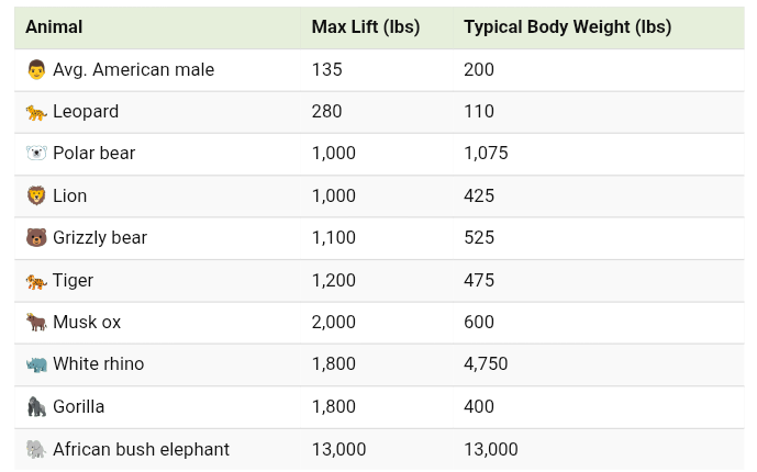 13,000lbs is impressive but the Gorilla lifting 4.5 times his weight is really impressive.