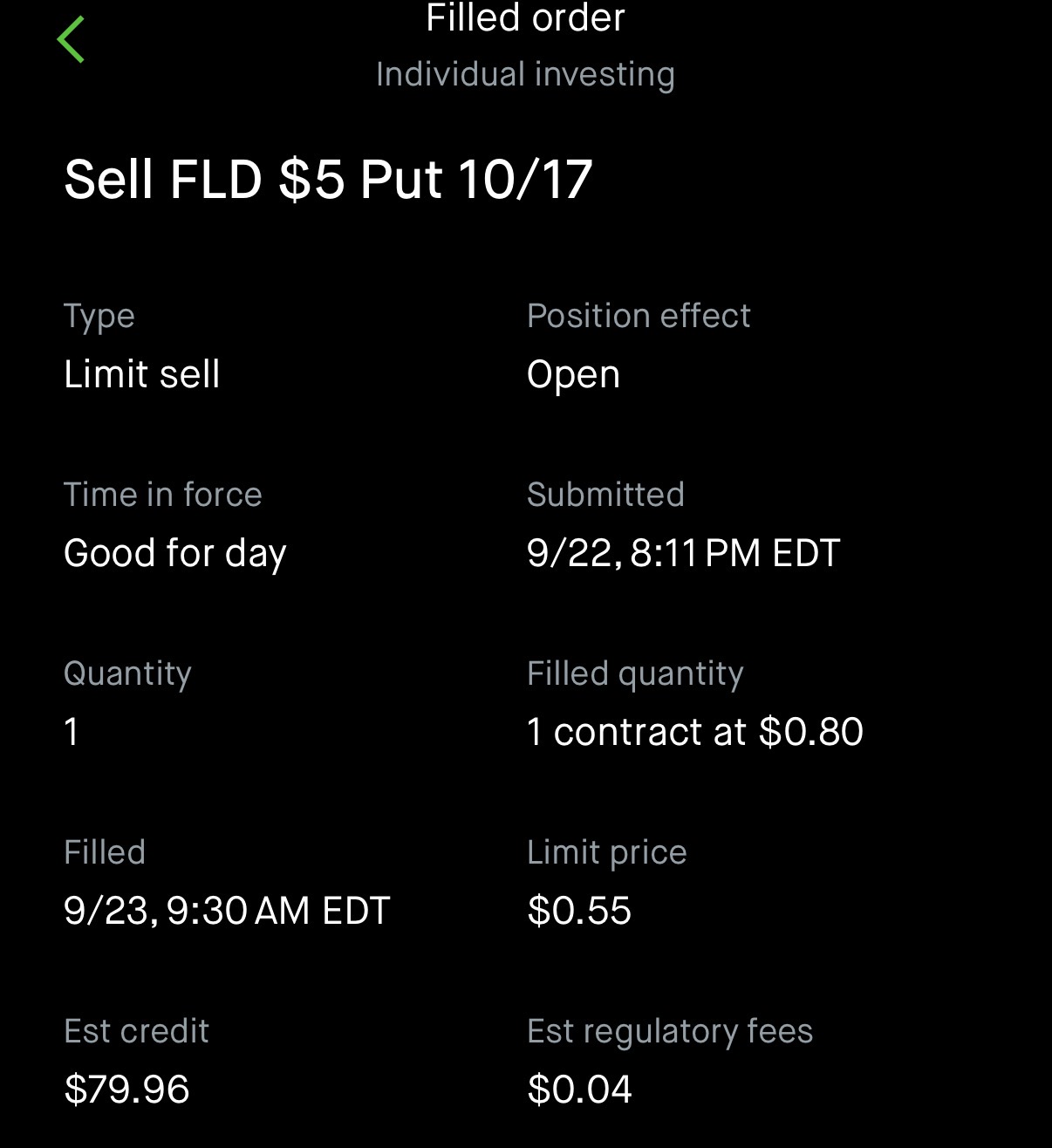 The trading bot spirits were not with us this time around. The $5 cash covered put I sold net a credit of $79.96