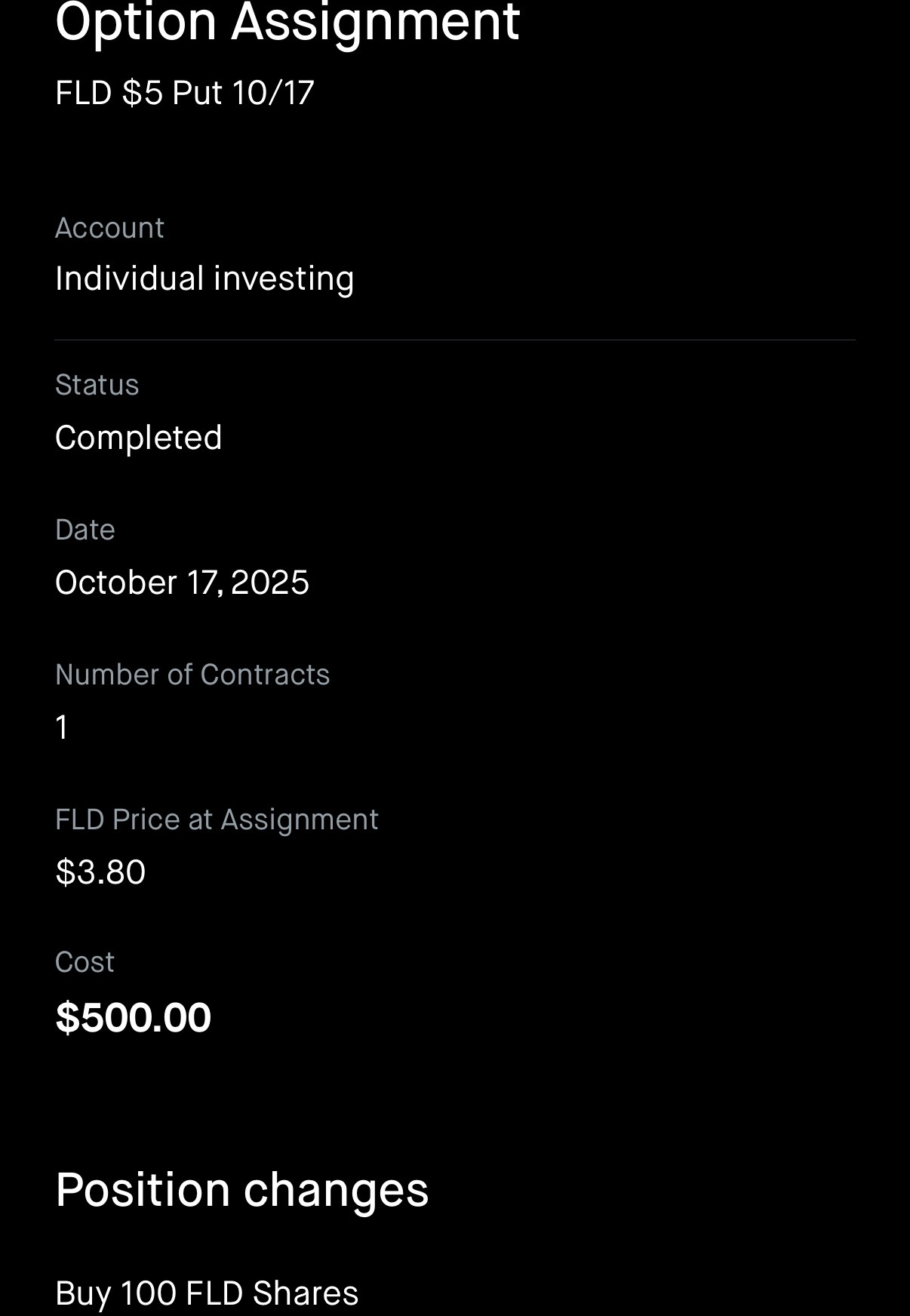 But Fold stock right back to its range after the mysterious pump around the option expiry in August. Thus the shares were assigned to me at $5 per share