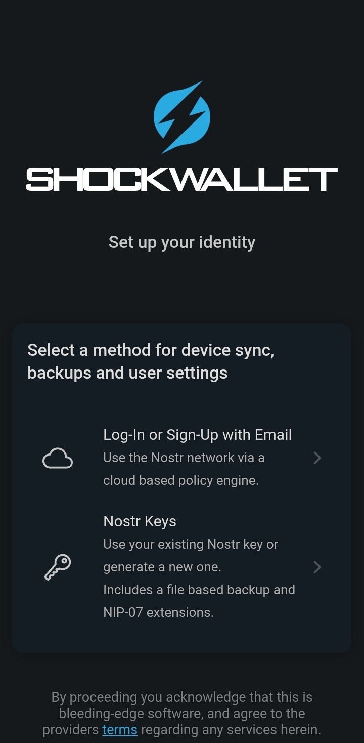 So I force stopped and uninstalled the wallet from previous uses, and when you reinstall, you're asked to either login using your identity or sign up. I used my Rawdog Nsec because that's how I roll