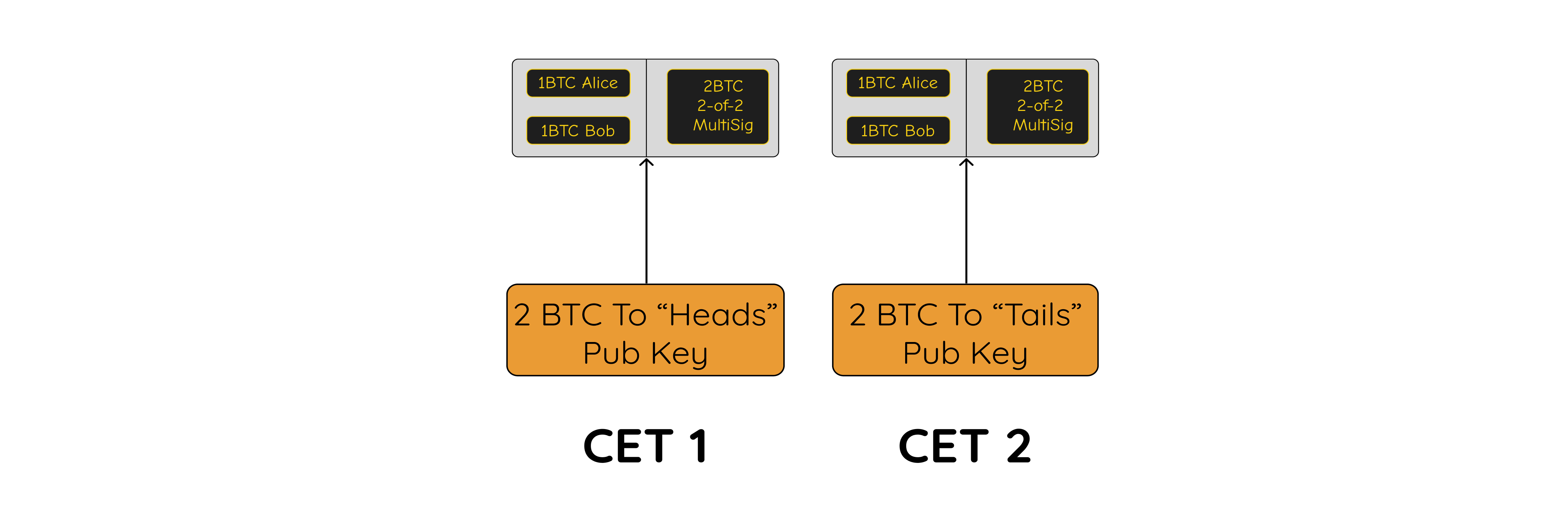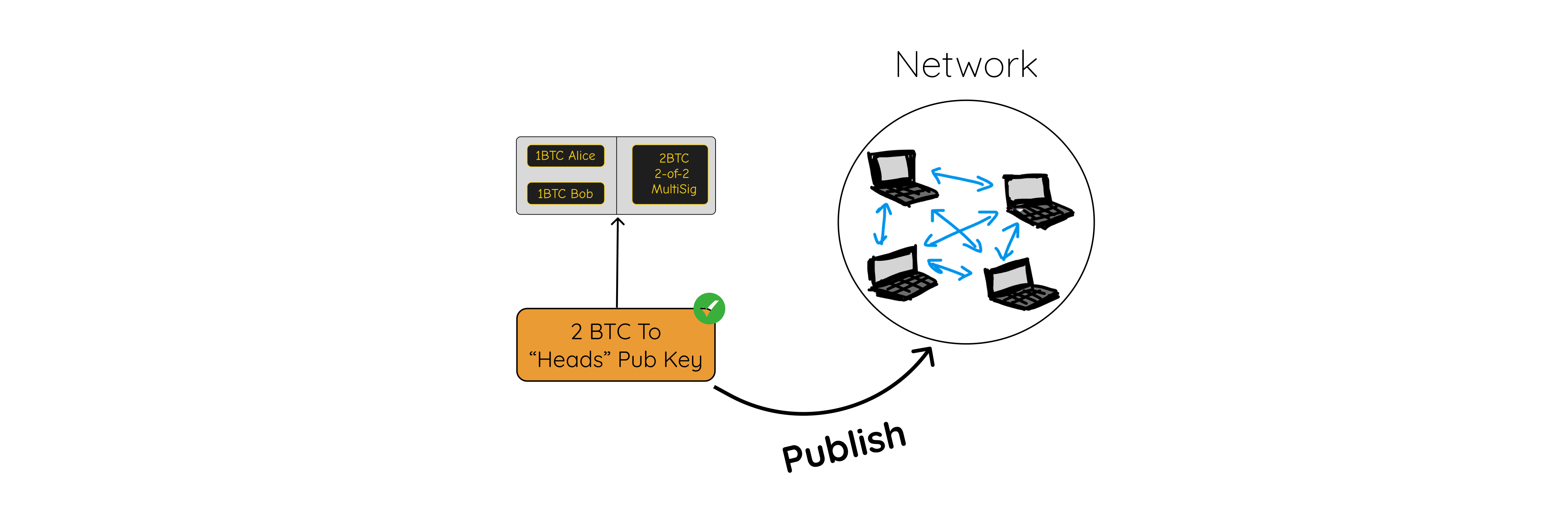 Because Alice chose “Heads,” she receives the 2 BTC.