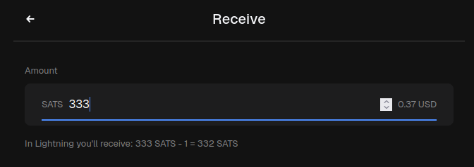First thing I noticed is that when setting up an invoice to receive is that any amount over 332 sats triggered a little tooltip: