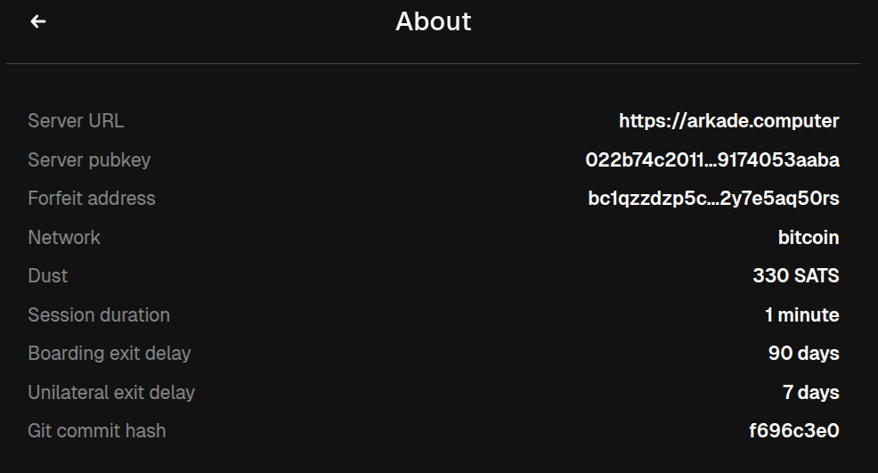 Finally, I noticed when I generated a QR for receiving that it showed an ark address. So, I decided to create a second Arkade wallet and see if it could receive a small amount of sats from my first Arkade wallet.