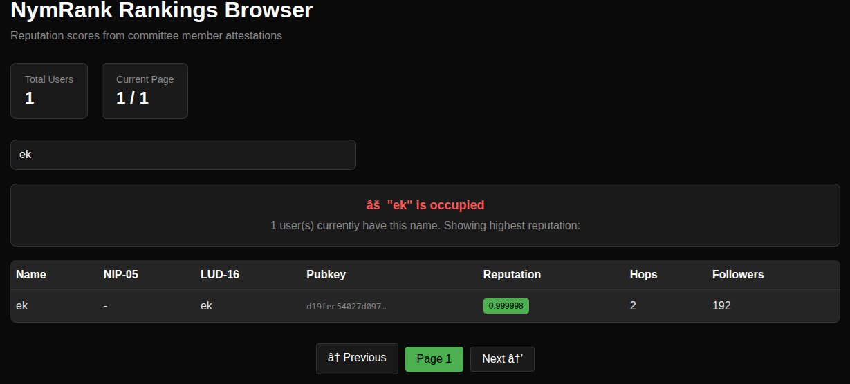 to his npub, and also tell your users at setup that they probably shouldn't use that name (unless they plan on being more famous than him to overtake his rank).