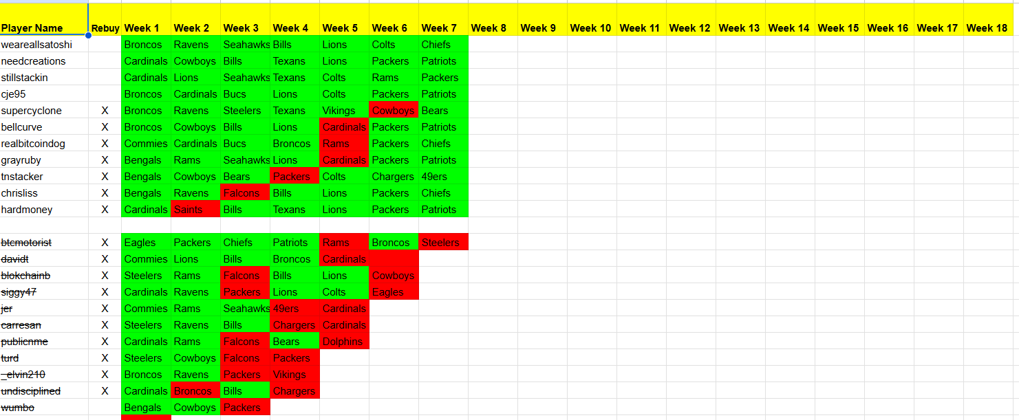 1 Cardinals 2 Cowboys 3 Bills 4 Texans 5 Lions 6 Packers 7 Patriots 8 Colts