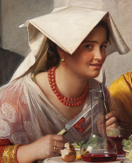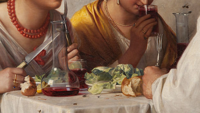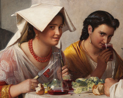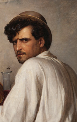 Longing is in the air, thick as red wine and freshly baked bread. Notice the young man, reclining, perhaps a little insolent.