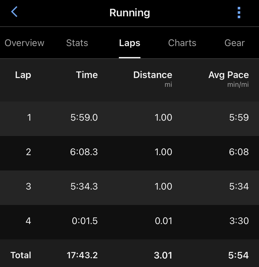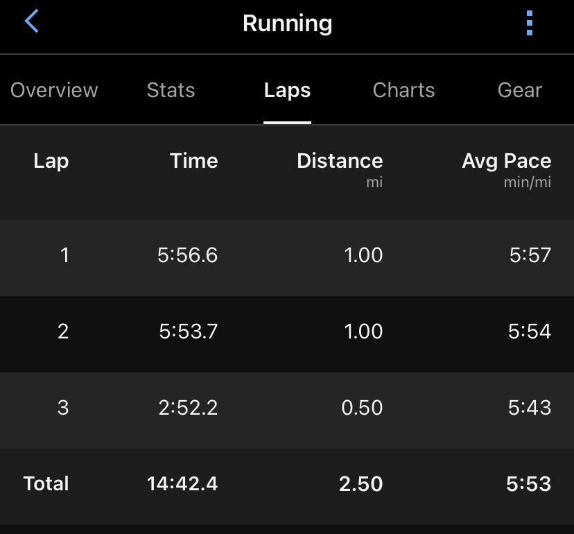 Ok next up a 10k. I think I recovered from that 16:53 5k. Did 12 last week at 6:59 pace and today some tempos. 2.5 miles in 5:53 pace and 5:54 pace for three miles with 5:34 my last mile as my fastest.