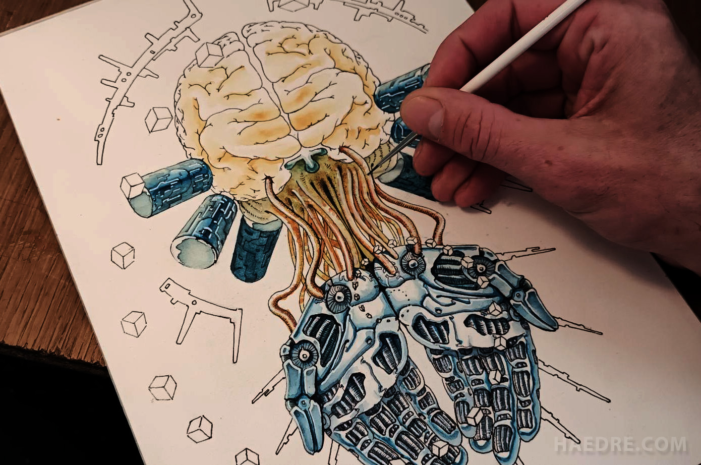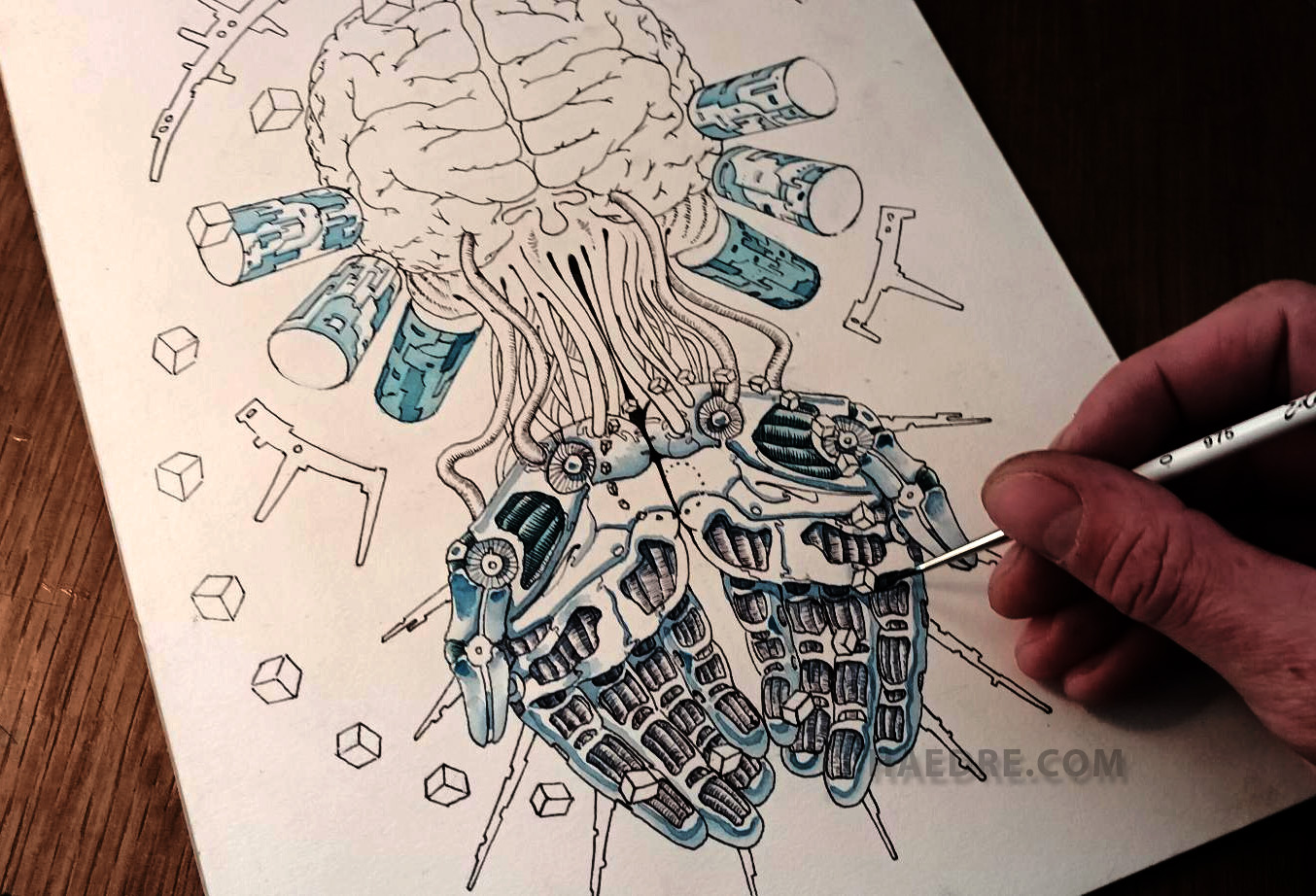 It's made with watercolor, gouache and ink on paper 120 gr.