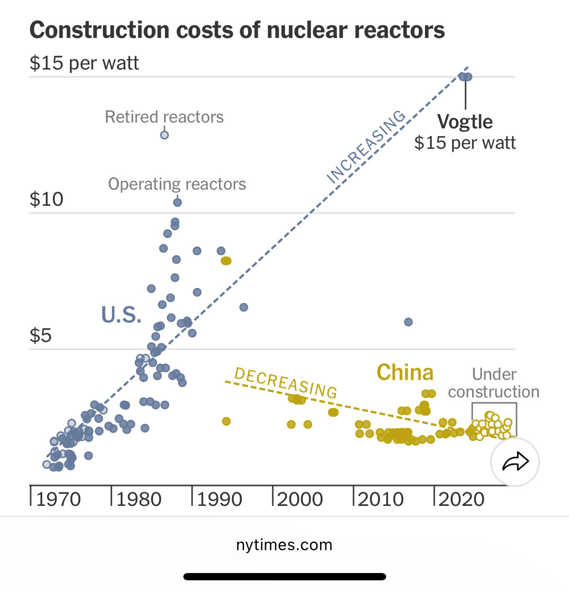 Construction costs of nuclear reactor US vs China