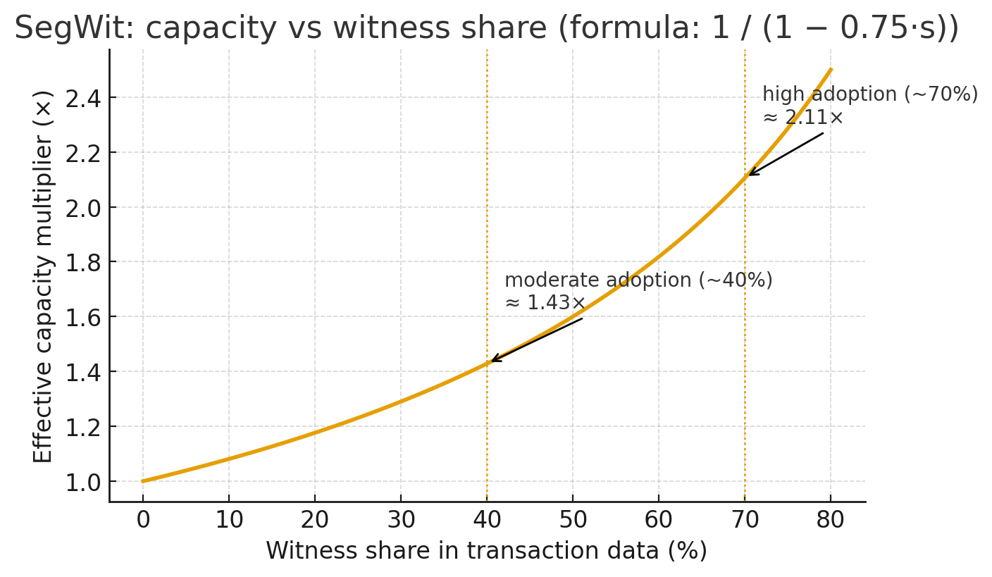 SegWit doesn’t “scale” everything by itself; it opens corridors. It’s the passage from a cramped hallway to an atrium with new doorways—where batching, Taproot, Lightning, and more now stand.