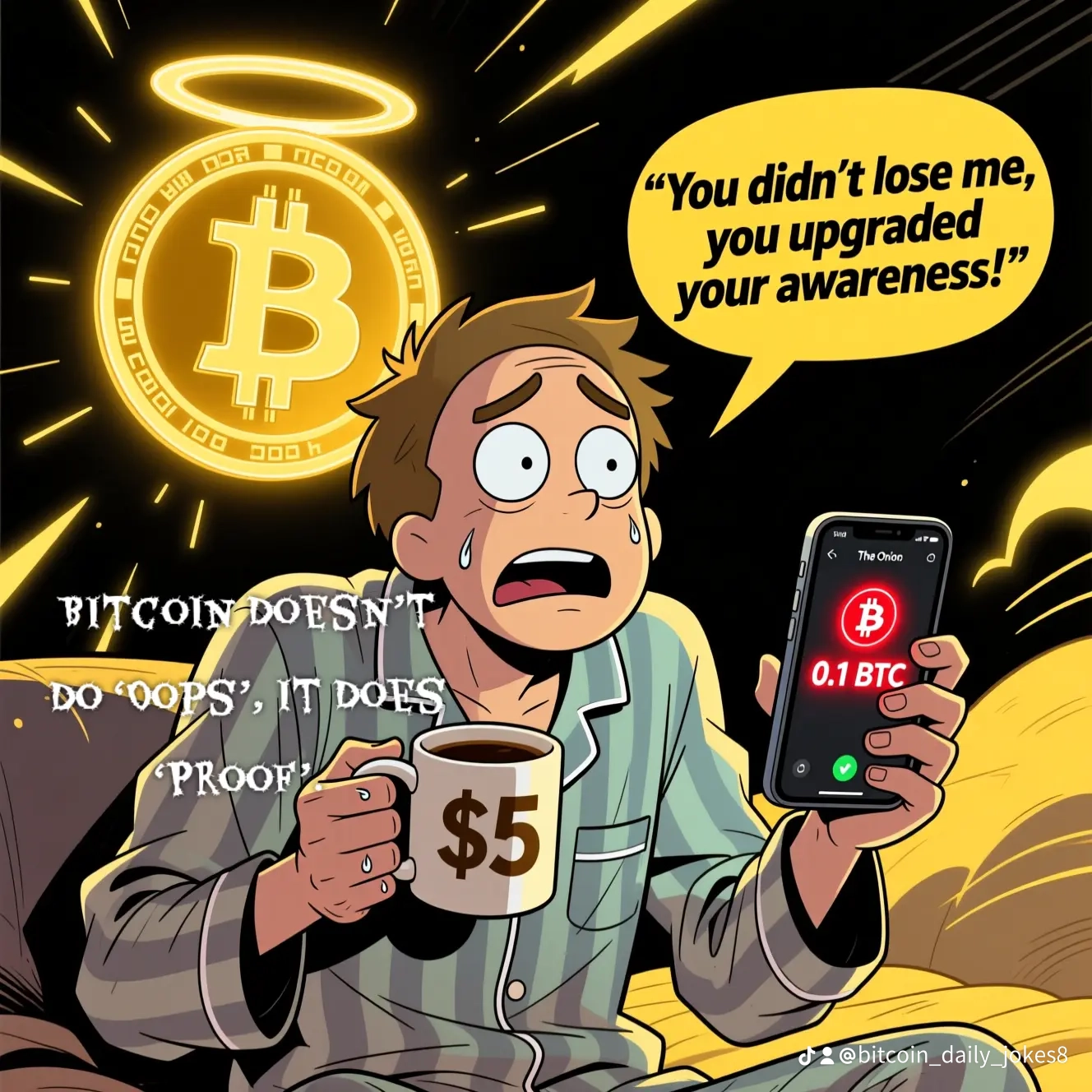 The joke flips the panic of a crypto mistake into a powerful lesson about Bitcoin’s core feature: immutability. Unlike banks or payment apps that let you “cancel” or “dispute” a transaction, Bitcoin’s ledger is final, no take-backs, no chargebacks, no middlemen.