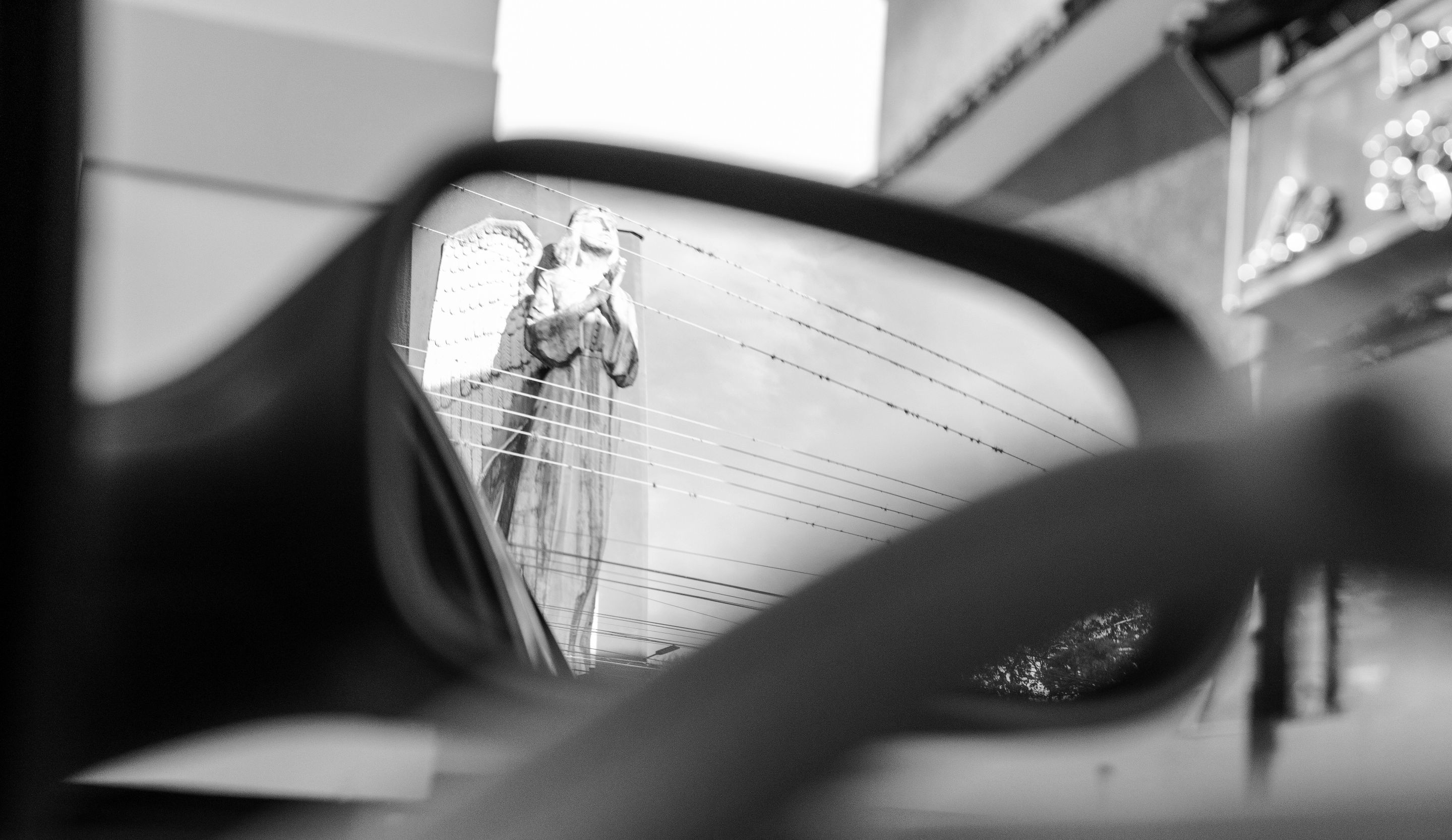 And I say goodbye with the following photography. It is an angel on the facade of a church, and I managed to frame it through a rearview mirror. The angel thanks you for all the support!