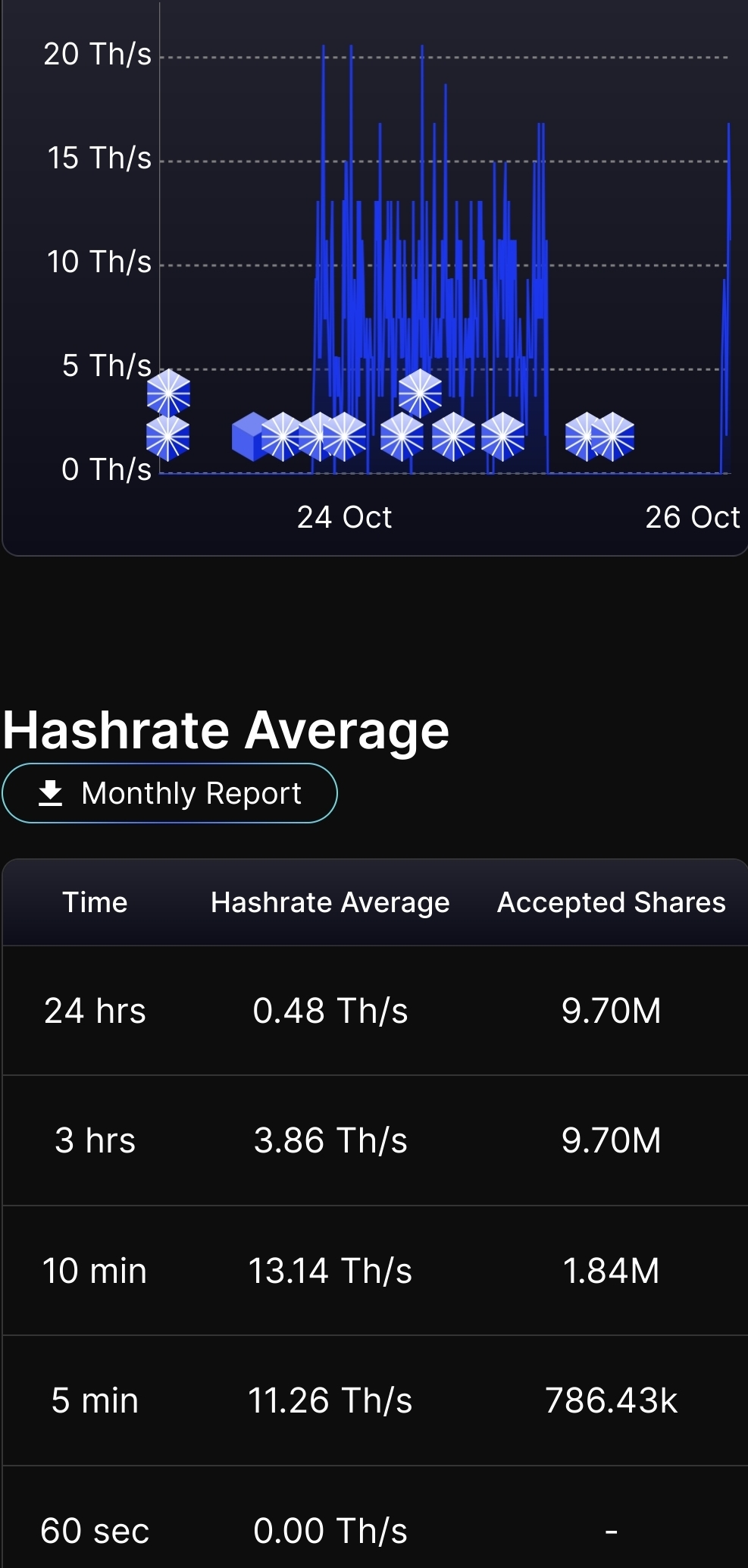 Last year my 24h average plateaued around 8.5Th/s. I dont expect to get there until Dec.
