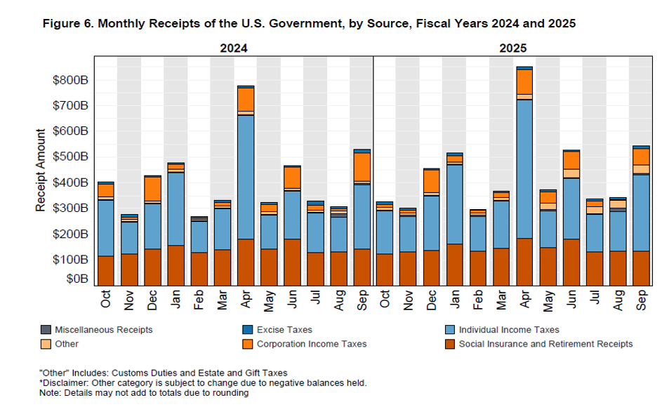 September’s fiscal surplus was not thanks to tariff revenue. In truth, it was thanks to Americans paying more in income tax. Tariffs were only 5.7 percent of revenue.