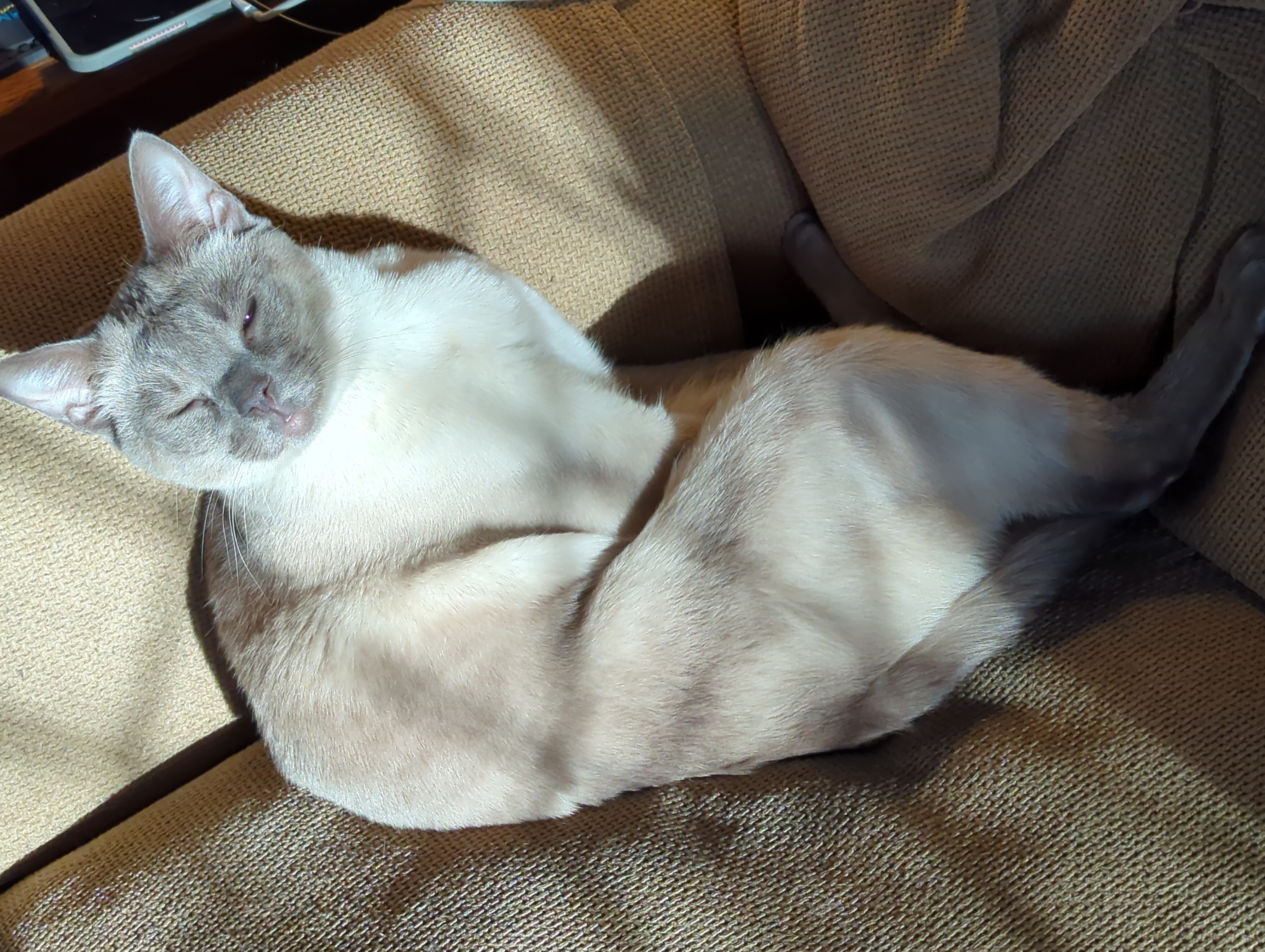 Two colors face is sick! Did she chew this up?