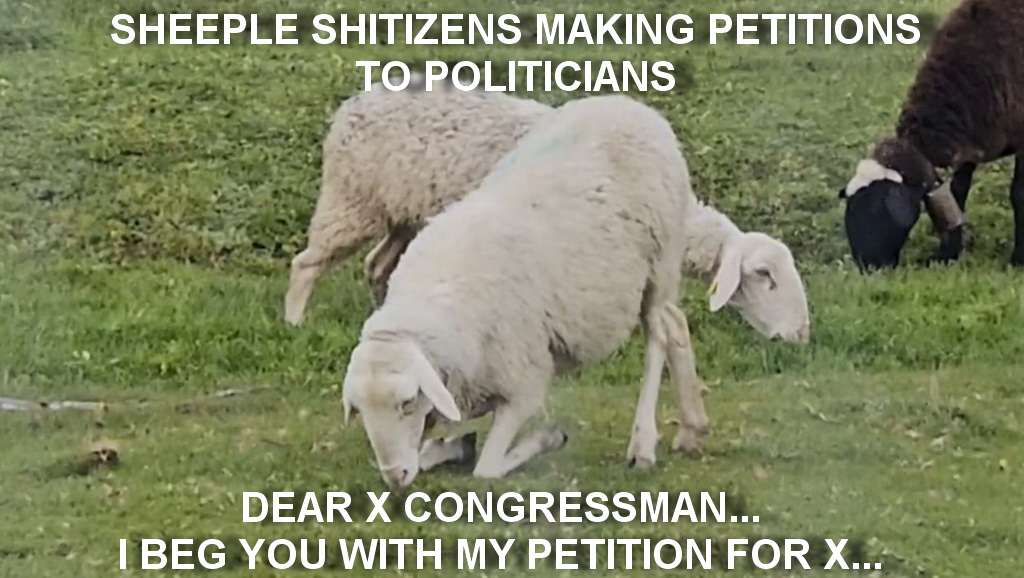 The ultimate sheep... begging for petitions. Literally makes me puke.