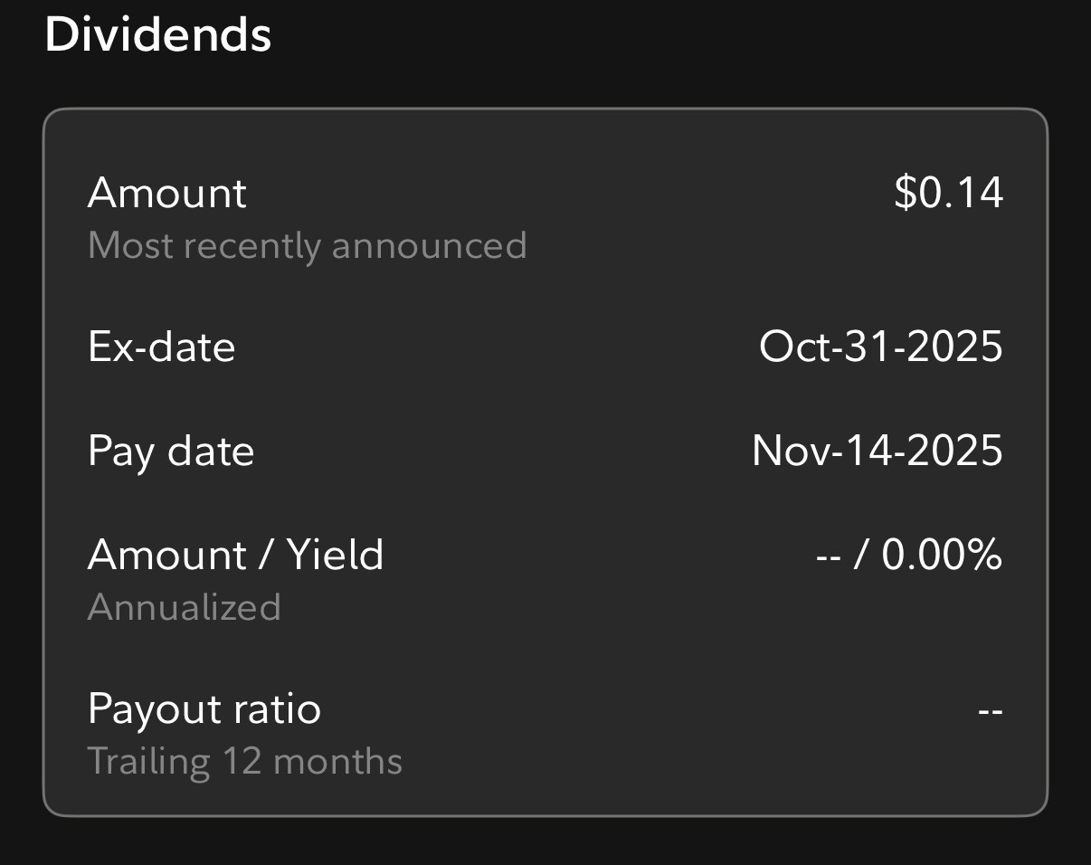 • I think they are paying a dividend!!! Wild!! I can’t find any news on this but fidelity says they are