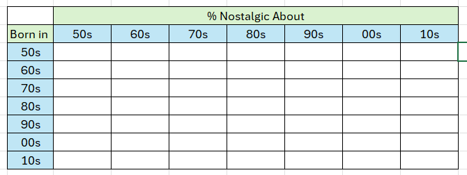 One would expect a tapering right tail on the simple basis that there aren't many people alive to be nostalgic about their 70s.